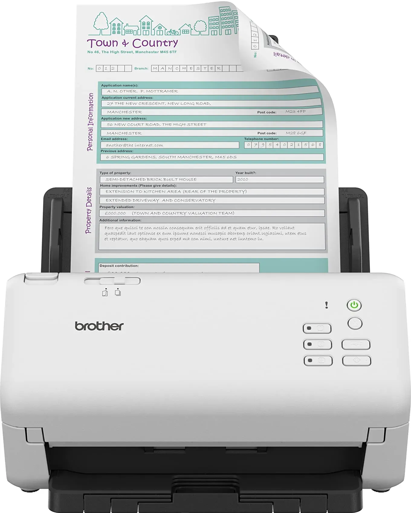EAN: 4977766814638 - Entdecken Sie die Effizienz und Vielseitigkeit des Brother ADS-4300N Dokumentenscanners, der idealen Lösung für Unternehmen, die eine schnelle und hochwertige Digitalisierung benötigen. Dieser leistungsstarke A4-Scanner wurde entwickelt, um Arbeitsabläufe zu optimieren und die Produktivität im Büro zu steigern.Ausgestattet mit einem geräumigen automatischen Dokumenteneinzug (ADF ) für 80 Blatt, bietet der ADS-4300N beeindruckendes beidseitiges Scannen mit einer Geschwindigkeit von bis zu 40 Seiten pro Minute (80 Bilder pro Minute im Duplex-Modus). Diese Funktion macht ihn zum perfekten Gerät für die effiziente Verarbeitung großer Dokumentenmengen.Im Folgenden finden Sie einige der wichtigsten Merkmale, die den Brother ADS-4300N zu einer hervorragenden Wahl für Ihr Unternehmen machen:Erweiterte Konnektivität mit SuperSpeed USB 3.0-Schnittstelle und Ethernet-NetzwerkDirect-to-Host USB-Scannen und Kompatibilität mit mobilen GerätenErweiterte Bildverarbeitung für qualitativ hochwertige ErgebnisseInklusive Brother ScanEssentials-Software für optimiertes DokumentenmanagementKompatibel mit Windows-, Mac- und Linux-BetriebssystemenDie optische Scanauflösung von 600 x 600 DPI, erweiterbar auf 1200 x 1200 DPI, sorgt für scharfe und detaillierte Bilder. Der Dual-CIS-Sensor und die LED-Beleuchtung sorgen für gleichbleibende und zuverlässige Qualität bei jedem Scan.Dank seiner Vielseitigkeit kann der ADS-4300N ein breites Spektrum an Medien verarbeiten, darunter ... Ein professioneller Desktop-Scanner mit schnellen Scangeschwindigkeiten und Netzwerkfunktion, ideal für anspruchsvolle Nutzer. ![]() ![]() Brother ADS-4300N Professioneller Desktop-Scanner mit schnellen Scangeschwindigkeiten, Duplex und Netzwerk