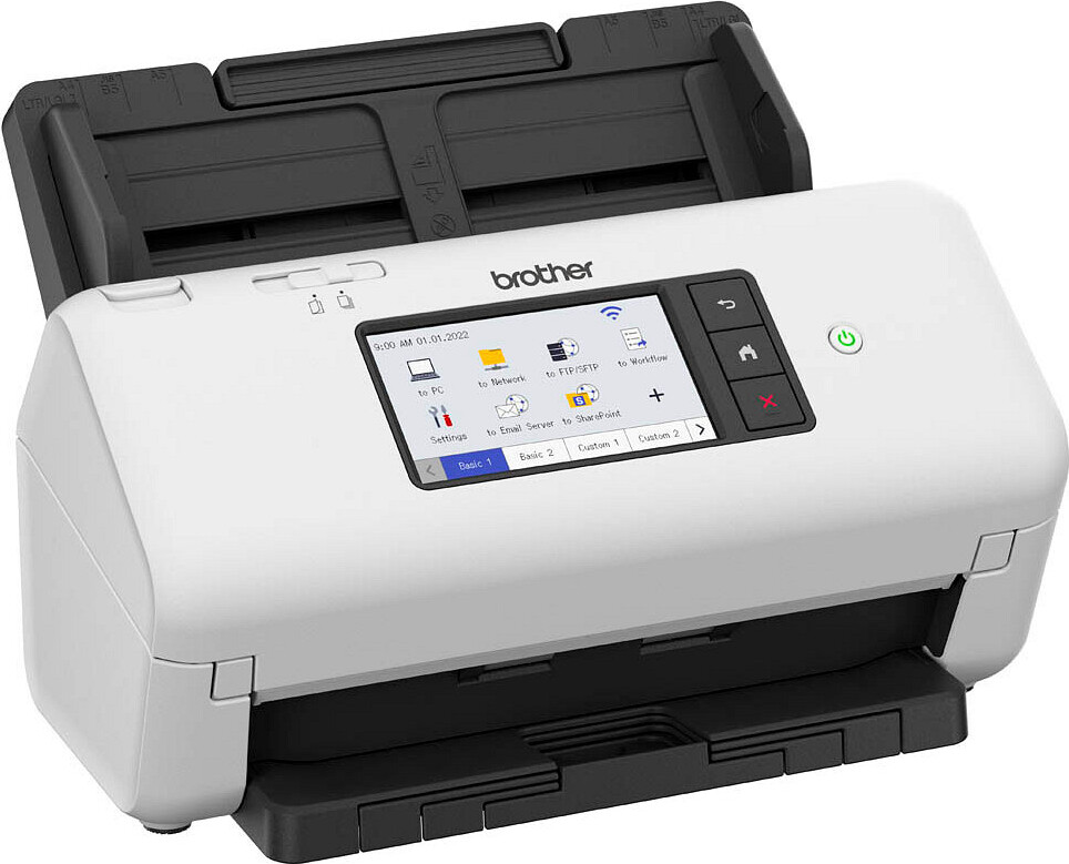 Kategorie: Dokumentenscanner - Brother - GTIN:4977766814706 - 2-seitiges Scannen: Scannt ein- und doppelseitige Dokumente in einem einzigen Durchgang, sowohl in Farbe als auch in Schwarz/Weiß mit bis zu 40 ppm/80 ipm Scangeschwindigkeiten EINFACH UND INTUITIV: Mit einem eingebauten Ultraschall-Multifeed-Sensor zur Beseitigung von Fehleinspeisungen verfügt der ADS-4700W über eine große 80-Blatt-ADF-Kapazität Zuverlässiges Scannen von Volumen: Gebaut für anspruchsvolle, hochvolumige Arbeitsplätze, ermöglichen Brother's Desktop-Scanner vielbeschäftigten Abteilungen, eine größere Anzahl und Vielzahl von Dokumenten schnell und einfach bis zu 6.000 Blatt pro Tag zu scannen und zu archivieren MIXED MEDIA Automatisches Scannen verschiedener Arten von Dokumenten nacheinander, eine Reihe von Dokumenten von Visitenkarten bis hin zu gefaltetem A3, mit einer Vielzahl von Papierstärken von 40 - 200 g/m2 können gleichzeitig eingeführt werden Branchenanerkannte Software: Erhöhen Sie die Produktivität nach dem Scannen mit branchenanerkannter Software einschließlich Kofax und Newsoft, standardmäßig mit Gerät erhältlich - 510,00 Euro bei Amazon Marketplace Automotive - gefunden von billiger.de reichelt.de bietet den Scanner mit LAN/WLAN und Duplex-Funktion zu einem guten Preis. ![]() Brother BRO ADS-4700W - Dokumentenscanner, A4, 40 S/min, LAN/WLAN, Duplex