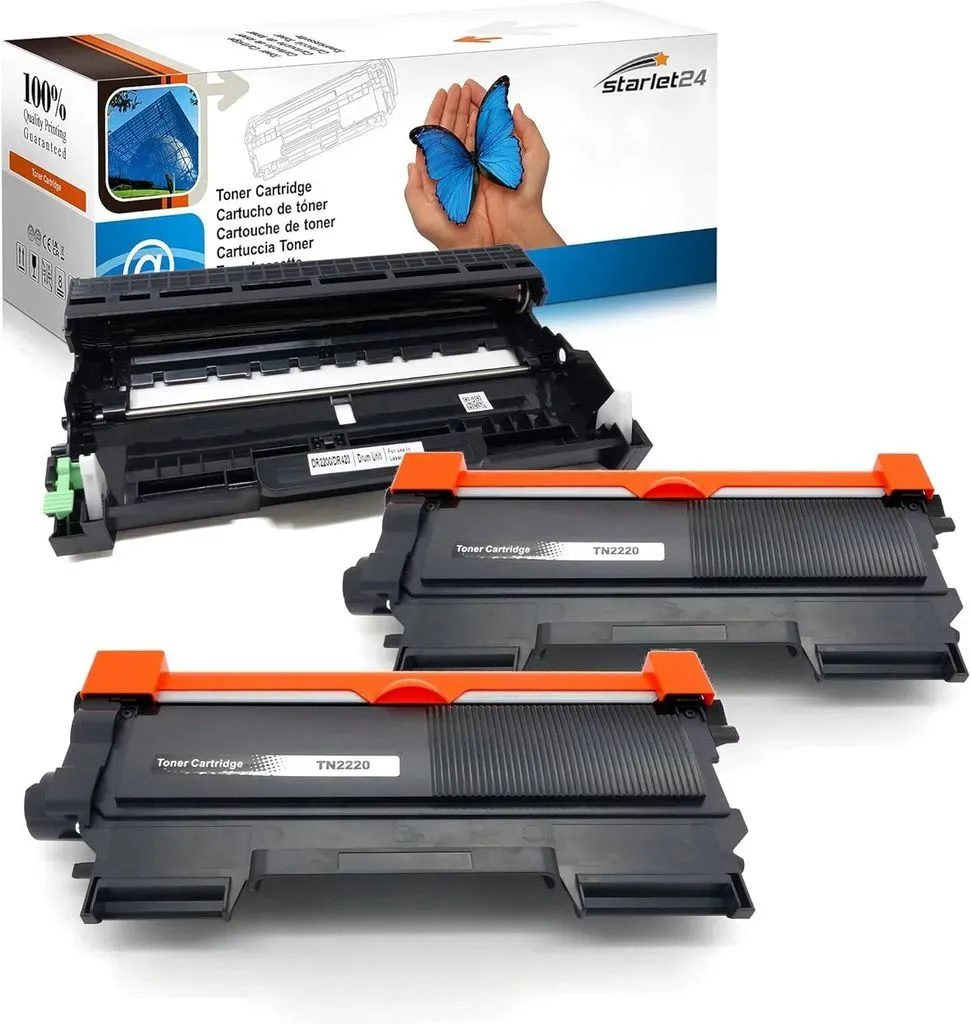 Kategorie: Sonstiges Druckerzubehör - Starlet24 - GTIN:4260705753359 - KOMPATIBEL MIT BROTHER DRUCKERN Passend für Brother DCP, MFC, HL & FAX-Modelle wie DCP-7055, MFC-7360N, HL-2240D, FAX-2940 u.v.m. HOHE REICHWEITE Jede Tonerkartusche druckt bis zu 2.600 Seiten, die Trommel hält bis zu 12.000 Seiten (bei 5 % Deckung). KLARE & SAUBERE DRUCKERGEBNISSE Ideal für professionelle Dokumente mit gestochen scharfem Schwarz-Weiß-Druck. EINFACHER EINBAU Problemlose Installation dank passgenauer Verarbeitung für kompatible Brother Laserdrucker. Produktbeschreibung:Dieses 2X Toner + 1X Trommel Set ist kompatibel mit Brother TN2220 und DR2200 und eignet sich für zahlreiche Brother DCP, MFC, HL & FAX Laserdrucker. Es bietet eine exzellente Druckqualität, hohe Seitenleistung und langlebige Komponenten die ideale Alternative zum Originalprodukt.Kompatible Druckermodelle: Brother DCP-Serie: DCP-7055, 7055W, 7057, 7060, 7060D, 7060N, 7065DN, 7070DW Brother MFC-Serie: MFC-7360N, 7460DN, 7470D, 7860DN, 7860DW Brother HL-Serie: HL-2130, 2130R, 2132, 2132R, 2135W, 2215, 2220, 2230, 2240, 2240D, 2240DR, 2250DN, 2250DNR, 2270DW, 2275DW, 2280DW Brother FAX-Serie: FAX-2840, 2845, 2940, 2950Hervorragende Druckleistung Seitenleistung pro Toner: 2.600 Seiten (bei 5 % Deckung) Seitenleistung pro Trommel: 12.000 Seiten (bei 5 % Deckung) Tiefschwarze Druckqualität für Dokumente mit klarem Text und sauberen LinienEinfache Installation & Langlebigkeit 100 % kompatibel Kein Chip notwendig, direkt ... Das Tonerversum Spar-Set mit 6 Tonern ist ideal für Nutzer mit hohem Verbrauch und bietet einen attraktiven Mengenrabatt. ![]() ![]() Tonerversum 6 Toner kompatibel zu Brother TN-2220 Schwarz für DCP-7060d DCP-7065dn HL-2250dn MFC-7460dn MFC-7360n MFC-7360ne Fax 2840 Druckerpatronen Spar-Set