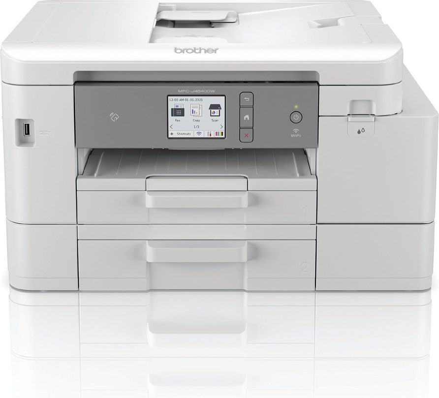 Verfügbarkeit: 5-7 Werktage - Kategorie: Multifunktionsdrucker - Brother - GTIN:4977766809610 - Das kompakte MFC-J4540DW ist ein Multifunktionsgerät in Business-Qualität, das eine Druck-, Kopier-, Scan- und Faxfunktion vereint. Drucken Sie dank der WLAN-Schnittstelle direkt vom Arbeitsplatz, von überall im Haus oder von Ihrem mobilen Gerät aus. Dank der NFC-Schnittstelle können Sie auch schnell und einfach von Ihrem Smartphone drucken. Das MFC-J4540DW bietet Ihnen eine Vielzahl an nützlichen Funktionen €“ zusätzlich zu den ergiebigen Tintenpatronen im Lieferumfang, mit Reichweiten bis zu 2.250 Seiten in S/W und 975 Seiten in Farbe*, €“ ein Business-Partner für Ihr Heimbüro, wie er im Buche steht. Ausdrucke in Business-Qualität Wieso auf qualitativ hochwertige Ausdrucke verzichten? Drucken Sie Ihre Dokumente auch im Homeoffice in bester Qualität - und das mit hoher Druckgeschwindigkeit. Jederzeit von überall drucken Passen Sie Ihre Druck- und Scangewohnheiten an Ihren Alltag an - für mehr Flexibilität auch in stressigen Zeiten. Drucken Sie über WLAN direkt von Ihrem Smartphone oder Tablet, mithilfe der kostenlosen App Brother Mobile Connect. Dank der Fern-Druckfunktion können Sie Ihre Druckaufträge von überall her starten. Stellen Sie schnell und bequem eine NFC Verbindung mit Ihrem Mobilgerät her und drucken Sie spontan ohne vorherige Netzwerkkonfiguration. Mehr Papierkapazität Dank zweier Papierkassetten für je 150 und 250 Blatt findet sich ... Office Partner GmbH bietet den Tintenstrahl-Multifunktionsgerät zu einem mittleren Preis an. ![]() ![]() Brother MFC-J4540DW Tintenstrahl-Multifunktionsgerät