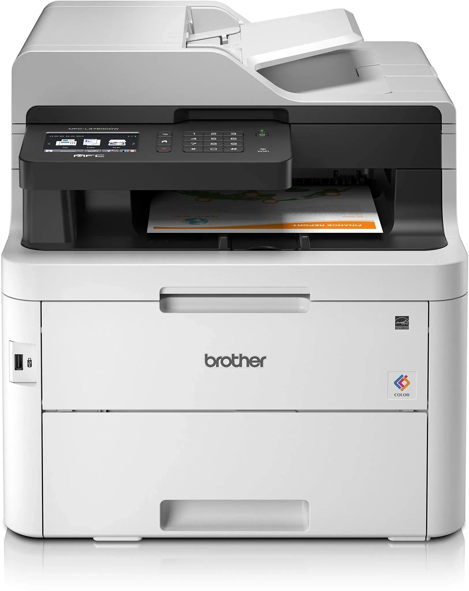 Zustand: Neu - Computing & Storage - Brother Brother International GmbH - MFC-L3750CDW - EAN: 4977766790284 - Kompaktes 4-in-1 Farb-Multifunktionsgerät mit WLAN/LAN 9,3 cm Touchscreen-Farbdisplay Auch von Mobilgeräten drucken, mittels Apple Airprint, Google Cloud Print oder Brother iPrint&Scan Lieferumfang: Brother MFC-L3750CDW inkl. Toner, Treiber-CD für Windows, Benutzerhandbuch (CD-ROM), Installationsanleitung, StromkabelEin Datenkabel ist nicht im Lieferumfang enthalten - Verkäufer: buchtec im amazon.de Marketplace Ein solides Angebot für den Farblaserdrucker mit Wireless-Funktionen und Duplexdruck. ![]() ![]() Brother MFC-L3750CDW A4 Farblaserdrucker, Wireless und PC verbunden, Drucken, Kopieren, Scannen, Faxen und 2 Duplexdruck