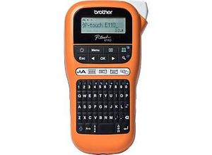 Auf Lager Versand durch AmazonBrother PT-E110 Industrielles Beschriftungsgerät (für 3,5 bis 12 mm breite TZe-Schriftbänder, Beschriftung von Kabeln und Anschlüssen), orange