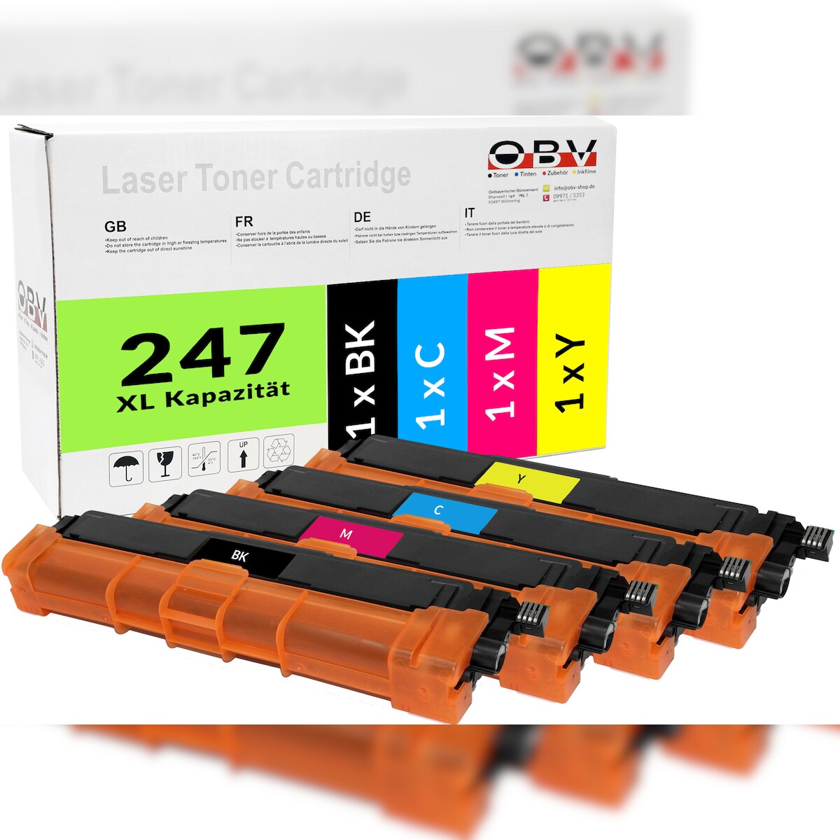 3 Händlerangebote bei billiger.de - Kategorie: Toner - OBV - Kompatibel TN247 OBV Toner ersetzt Brother 247 für HL-L3210CW L3230CDW MFC-L3770CDW L3750CDW L3550CDW - 4er Pack Hochwertige kompatible Toner im günstigen Sparset als Alternative zu Brother 247 TN-247 243 TN243BK TN-243BK TN-243CMYK TN243C TN243Y TN243M TN243C TN-247BK TN-247C TN-247M TN-247Y TN247BK TN247C TN247M TN247Y aus geprüfter industrieller Herstellung. Diese Druckerpatronen sind kein Produkt des Originalherstellers aber zu 100% kompatibel. Druckfarben dieser Tonerkartuschen: schwarz, cyan, magenta, gelb Lieferumfang / Menge: 4 Stück Unser OBV 'PREISWERT UND GUT!' Druckerzubehör ist die clevere Alternative mit großem Einsparpotenzial und hervorragendem Preis-/ Leistungsverhältnis. Mit unserem alternativ Druckerzubehör wie Druckerpatronen, Tintenpatronen und Toner und Farbbänder lässt sich der Seitenpreis der Ausdrucke enorm senken. OBV - Ihr deutscher Fachhandel für Druckerzubehör seit 1991 Wir stehen für Jahrzehnte Erfahrung im Bereich Druckerzubehör. Bei unseren Produkten arbeiten wir mit ausgewählten Herstellern und Lieferanten zusammen um unseren Kunden eine optimale Qualität und ein hervorragendes Preis-/Leistungsverhältnis zu bieten. Das von unseren Herstellern verwendete Tonerpulver ist auf den jeweiligen Drucker abgestimmt. Einsetzen, drucken und mit OBV Druckerzubehör dauerhaft die Druckkosten senken. Kapazität: Seitenleistung (Kapazität) bei 5% Seitendeckung: ca BK 3000 / C M ... Dieses 4er-Pack kompatibler Toner bietet ein hervorragendes Preis-Leistungs-Verhältnis für Nutzer, die alle Farben benötigen. ![]() Kompatibel TN247 OBV Toner ersetzt Brother 247 für HL-L3210CW L3230CDW MFC-L3770CDW L3750CDW L3550CDW - 4 Pack