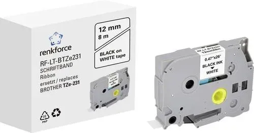 1 Händlerangebote bei billiger.de - Kategorie: Farbbänder - Renkforce - Laminiertes Standard-Schriftband, welches sich insbesondere für glatte und ebene Oberflächen eignet. Dank seiner Laminierung ist das Schriftband wisch-, wetter- und kratzfest und hält selbst extremen Bedingungen hinsichtlich Abrieb, Temperaturen, Chemikalien und UV-Licht stand. - GTIN:4064161311951 Dieses G&G Schriftband ist eine preiswerte Alternative zum Original und bietet gute Qualität für den täglichen Gebrauch. ![]() G G Schriftband »RL-BR-TZ231P ersetzt Brother TZe-231« 12 mm x 8 m s/w schwarz, 1.2 cm
