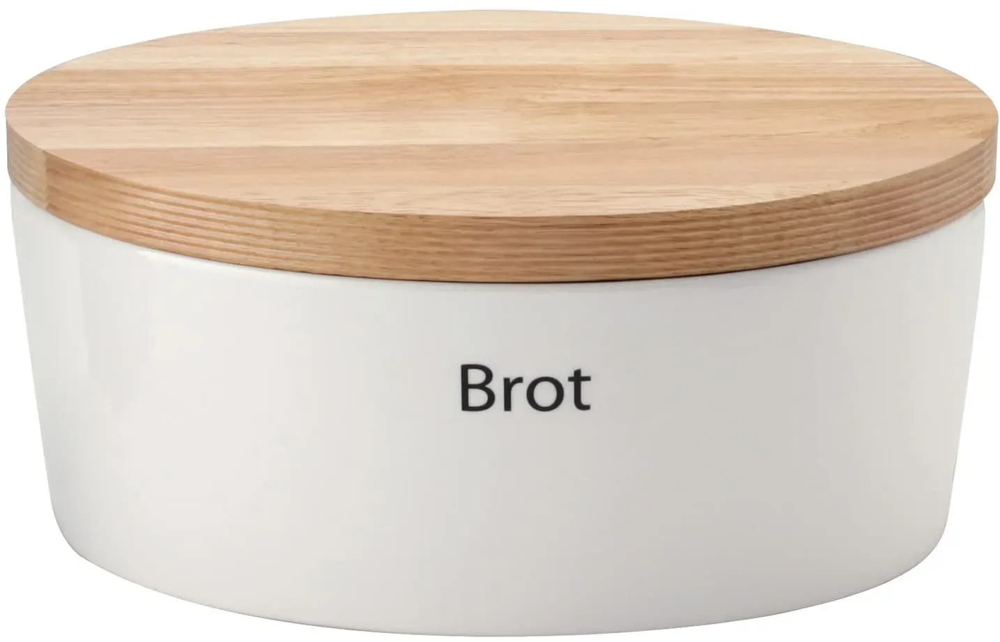 Gesamtsortiment Haushalt Küche Lebensmittelaufbewahrung Brotaufbewahrung Sonstige - EAN:4017167373102 - Der Brottopf aus nachhaltig angebauten, europäischen Hölzern wird in Handarbeit gefertigt. Highlights: - Rückseite des Deckels als Brotschneidebrett nutzbar - Aufwändig gefräste Kanten - Frisches Brot durch spezielle Luftlöcher - Austauschbare Beschriftungen zum Aufkleben - Made in Portugal Hochwertig: Jedes Stück wird in aufwändiger Handarbeit aus natürlichen Materialien in einem portugiesischen Fachbetrieb hergestellt und entspricht höchsten Qualitätsanforderungen. Zeitloses Design: Unsere Designer entwickeln schöne und praktische Designs, unter anderem in der Kombination aus weisser Keramik und hellem Gummibaumholz. Die klaren Linien und freundlichen Farben passen in jedes Ambiente. Individualität: Die Brottöpfe sind mit Luftlöchern im Deckel ausgestattet. Austauschbare Beschriftungen zum Aufkleben liegen bei. Reinigung: Holz ist ein reines Naturprodukt. Nur feucht abwischen und stehend trocknen. Zu intensive Feuchtigkeit beziehungsweise Temperaturunterschiede können zu Verformungen, Rissen und Verfärbungen führen. - gefunden von Kelkoo Der KRUSTENZAUBER Brotkasten ist eine moderne Brotbox mit Deckel, die ideal für frisches Brot und Brötchen ist. ![]() ![]() KRUSTENZAUBER Brotkasten Keramik zur Brotaufbewahrung Moderne Brotbox mit Deckel Bread Box ideal für frisches Brot & Brötchen Brotaufbewahrungsbox für Küche & Frühstückstisch - Brottopf Keramik