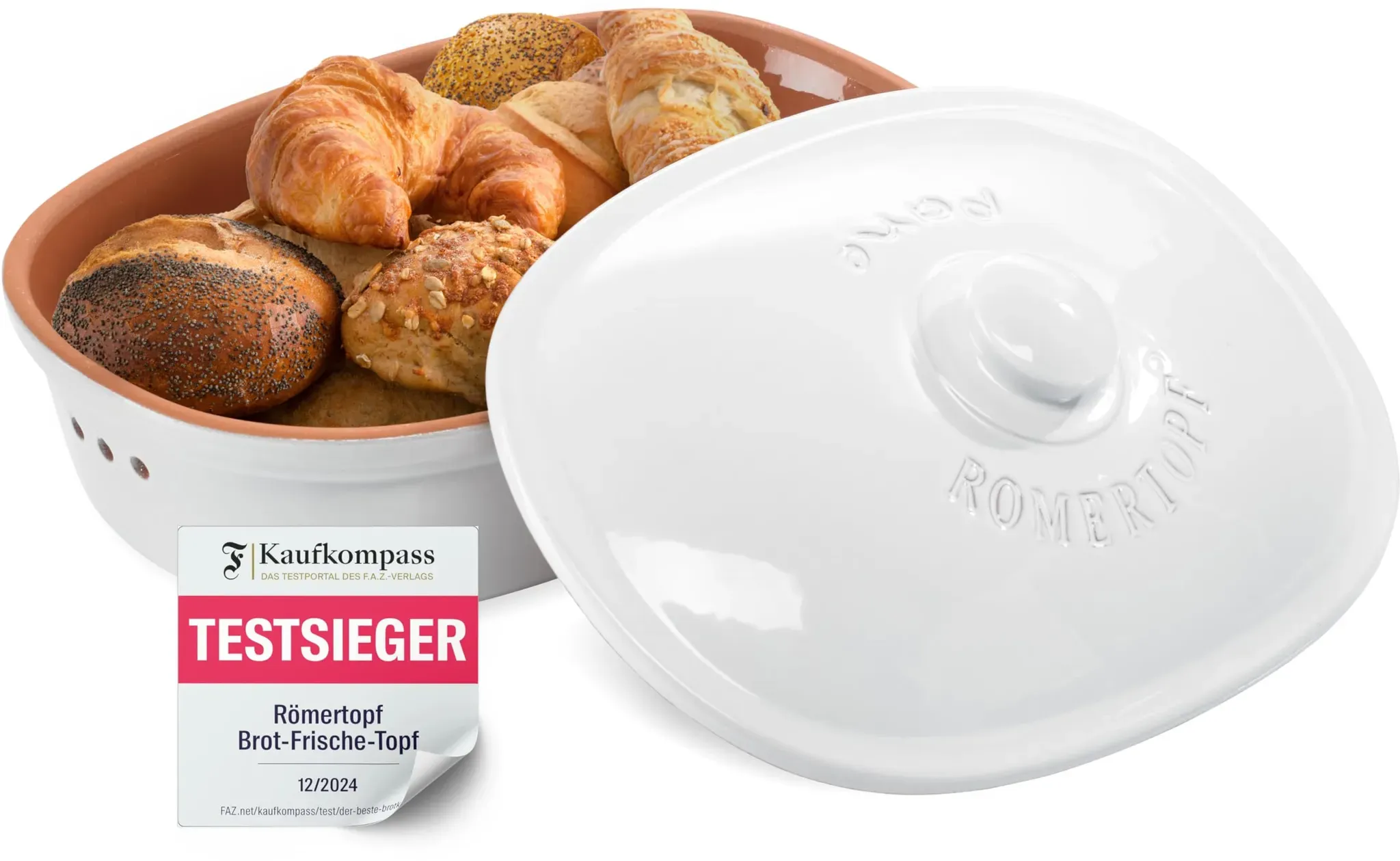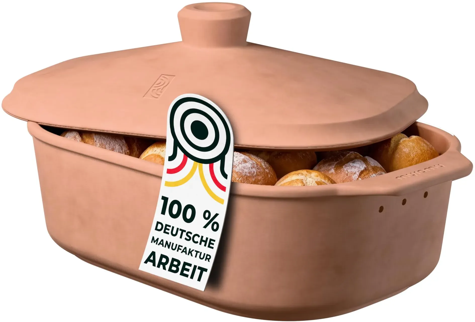 Kategorie: Brotkästen - myromy - GTIN:4250924100492 - Funktion, Nutzen und zeitloses Design aus natürlichem Ton: Für Brote bis 1,5 kg, 6 8 Brötchen, Baguette, Backwaren, Kartoffeln, Zwiebeln, Gemüse. Außen und Deckel inneseite unbehandelt, innen hochwertig glasierte Westerwälder Keramik. Taeglicher Genuss in Baeckerqualitaet frei von Schadstoffen: Die atmungsaktive Keramik reguliert Feuchtigkeit wie eine natürliche Klimaanlage für täglich frischen Genuss. Die Brotkruste bleibt knusprig, die Krume weich. Atmungsaktiv gegen Schimmel: drei Lüftungslöcher pro Seite und eine hochwertig glasierte Innenfläche mit Belüftungs-Noppen sorgen für belüftete Lagerung und Luftzirkulation. Dank unglasiertem Deckel bleibt die Feuchtigkeit im Gleichgewicht, Kondenswasser und Staunässe werden reguliert. Auch Gemuese natuerlich lagern: Kartoffeln, Zwiebeln, Knoblauch, Ingwer, äpfel auch Gemüse profitiert von der dunklen, atmungsaktiven Keramik. Die Vorräte bleiben länger frisch und geschützt vor Licht und Feuchtigkeit. Hochwertiges Design im Detail: Der myromy Brot-Frische-Topf überzeugt durch seine zeitlose Eleganz Seine natürliche Formgebung gemacht für moderne wie traditionelle Küchen. 100% Made in Germany: Handgefertigt für Generationen aus Westerwälder Ton, 100 % kreislauffähig & recyclebar. 100 % Schadstofffrei, plastikfrei spülmaschinengeeignet. - 84,95 Euro bei Amazon Marketplace Kitchen - gefunden von billiger.de Dieser RÖMERTOPF Brottopf in Weiß mit 6,5 Litern Fassungsvermögen ist ein großer, ovaler Brotbehälter aus natürlicher Keramik, der atmungsaktiv und spülmaschinengeeignet ist. ![]() ![]() ROMERTOPF Römertopf Brottopf weiß 6,5 Liter ovaler Brotbehälter aus natürlicher Keramik mit Deckel zur Aufbewahrung von Brot, Brötchen, Obst & Gemüse atmungsaktiv & spülmaschinengeeignet