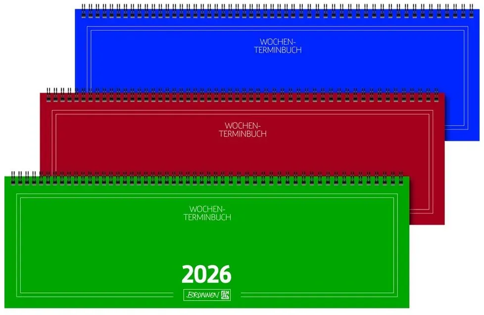 Zustand: Neu - Personal Organizer - BRUNNEN Baier & Schneider GmbH & Co. KG, Wollhausstr. 60-62, 74072 Heilbronn, DE - 1077501956 - EAN: 4061947144130 - Blattgröße: 420 × 137 mm 2 Seiten = 1 Woche, 112 Seiten, Druckfarbe Kalendarium: schwarz, 80 g/m², Wire-O-Bindung Karton-Umschlag, Sortierung: 3 Farben (blau, rot, grün), Jahresübersicht Folgejahr, 2 Seiten Monatsplan aktuelles Jahr, 1 Seite Folgejahr Januar bis Juni, Ferientermine Deutschland für Kalenderjahr 2026 - Verkäufer: ST-Styling im amazon.de Marketplace ![]() ![]() Brunnen Querkalender 775 42x13,7cm 1 Woche/2 Seiten Karton-Umschlag sortiert 2026