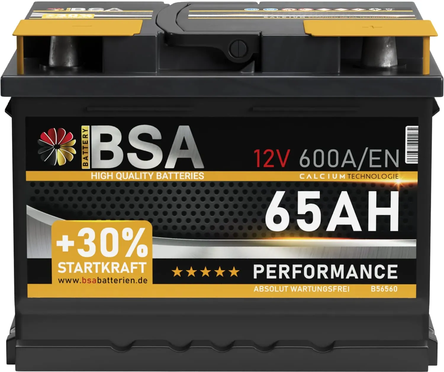 Kategorie: Autobatterien - BSA BATTERY HIGH QUALITY BATTERIES - GTIN:4260713245426 - BSA Performance Autobatterie, Spannung: 12V, Kapazität: 65Ah, Kälteprüfstrom: 595A, +30 % mehr Startkraft durch neu Calcium Technologie Hochstwertige Premium-Starterbatterie mit außergewöhnlich hohe Kaltstartleistung und Energiereserven. Durch die neue Calcium Technologie leistet die Batterie hervorragende Arbeit und ist auch bei Wärme und arktischer Kälte sehr widerstandsfähig. Maximale Qualitätsstandards lassen keinen Raum für Kompromisse. Die BSA ist eine höchst zuverlässige Autobatterie, die Autoliebhaber auf der ganzen Welt zu schätzen wissen Maße (L x B x H): 242 x 175 x 175 mm, Polanordnung: +Pluspol Rechts, Bodenleiste: B3/B13, Polart: Normalpol Rund. Auslieferung: geladen, gefüllt und sofort betriebsbereit - 59,99 Euro bei Amazon Marketplace Automotive - gefunden von billiger.de ![]() ![]() Autobatterie 12V - 60Ah 540A eBay EN Speed starter Batterie ersetzt 55 56 62 65 Ah