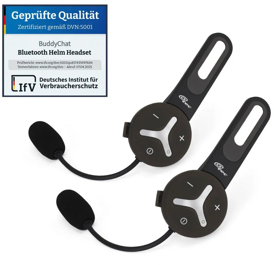 Auf Lager Versand durch AmazonBuddyChat Duo (2er Set) Bluetooth® Headset Fahrrad Sport Ski Arbeit Intercom Helm Headset, Freisprechanlage Funkgerät, Gegensprechanlage, DSP-Geräuschunterdrückung, Reichweite bis 1000m