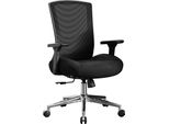 Chefsessel Wohnen Arbeiten Schreibtischstühle - - Wer viel sitzt, sollte beim Bürostuhl-Erwerb auf Komfort und Funktionalität achten. Dank dem Bürostuhl Top Point mit Synchronmechanik sind selbst stressige Arbeitstage, an denen man viel Zeit am Schreibtisch verbringt, kein Problem mehr. Für entspanntes und nicht zu statisches Sitzen sorgt die Synchronmechanik, die ermöglicht, dass sich sowohl Sitzfläche als auch Rückenlehne in einem optimalen Verhältnis zueinander neigen können. Der Stuhl besitzt eine 600 Millimeter hohe Rückenlehne, eine vergleichsweise mittelhohe Ausführung. Diese ist in einem Bereich von 80 Millimetern höhenverstellbar, sodass Sie sie genau an Ihre Körpergröße anpassen können. Für eine perfekte Unterstützung im Lendenwirbelbereich sorgt eine Lumbalstütze. Alle, die häufig stundenlang im Büro sitzen, profitieren vom bequemen Flachsitz. Die im Sitz integrierte Knierolle verhindert, dass sich auch bei langem Sitzen Blut in den Beinen staut und entlastet damit Ihre Beinmuskulatur. Ihr neuer Bürostuhl lässt sich durch einen Sicherheitslift auch in der Höhe genau an Beinlänge und Sitzhaltung anpassen. Damit Sie, auch wenn der Arbeitstag mal länger wird, ein gutes Sitzgefühl haben, verfügt das Modell über eine besonders komfortable Polsterung. Der Stoffbezug ist strapazierfähig und pflegeleicht. Sie können ihn ganz unkompliziert mit einer Polsterdüse absaugen und einmal jährlich mit einem Polsterreiniger behandeln, sodass er seine Farbe behält und Ihnen lange ... B2bpartner .de B2B Partner Bürostuhl JONES, schwarz