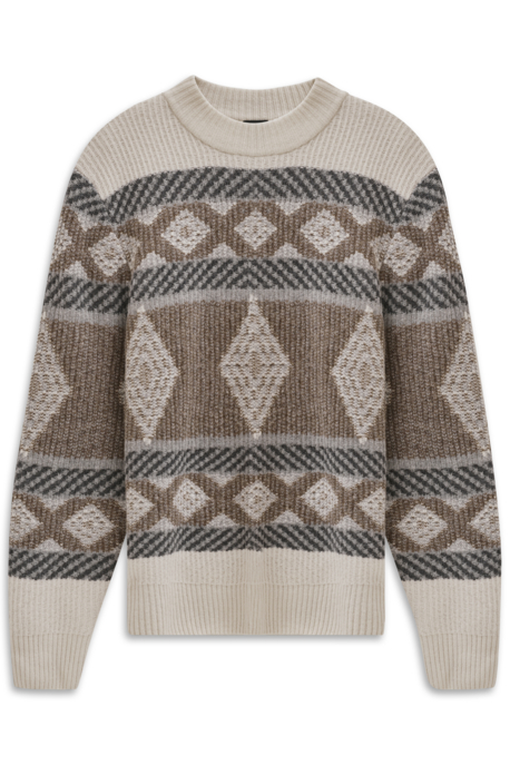 Rollkragen-Pullover Mode Bekleidung Pullover Sweater Pullover Pullunder - - Dieser bugatti Troyer vereint markanten Strick-Look mit maximalem Komfort und hochwertiger Verarbeitung. Der Regular Fit sorgt für eine bequeme, gerade Passform, die dir viel Bewegungsfreiheit bietet und dabei gepflegt wirkt. Die charakteristische Ripp-Struktur verleiht dem Pullover eine moderne, maskuline Optik und macht ihn zum vielseitigen Begleiter in der kalten Jahreszeit. Der hohe Stehkragen schützt dich zuverlässig vor Wind und Kälte, während der kurze Reißverschluss ein unkompliziertes An- und Ausziehen ermöglicht und dir individuelle Stylingmöglichkeiten bietet - offen getragen für einen lässigen Look oder geschlossen für mehr Wärme. Der Materialmix aus Wolle und Polyamid liegt angenehm weich auf der Haut, ist atmungsaktiv und hält dich zuverlässig warm. Ob kombiniert mit Jeans, Chino oder Stoffhose - dieser Troyer passt sich deinem Stil flexibel an und sorgt immer für einen souveränen Auftritt. Wenn du Wert auf Qualität, Langlebigkeit und zeitloses Design legst, ist dieser bugatti Troyer genau das Richtige für dich., Material: Materialzusammensetzung: 80% Wolle, 20% Polyamid, Materialart: Sweatware, Pflegehinweise: Schonwäsche, Optik/Stil: Optik: unifarben, Farbe: Farbbezeichnung: 30-beige, Passform/Schnitt: Kragen: Stehkragen, Ausschnitt: ohne Ausschnitt, ärmellänge: Langarm, ärmelabschluss: Rippbündchen, Passform: regular fit, Details: Verschluss: Reißverschluss, Besondere Merkmale: mit ... Dieser Norweger Pullover mit klassischem Fair-Isle-Design ist eine warme und stilvolle Wahl für den Winter. ![]() ![]() bugatti Herren Norweger Pullover 7700-85564D Regular Fit Stehkragen klassisches Fair-Isle-Design Strickpullover warm