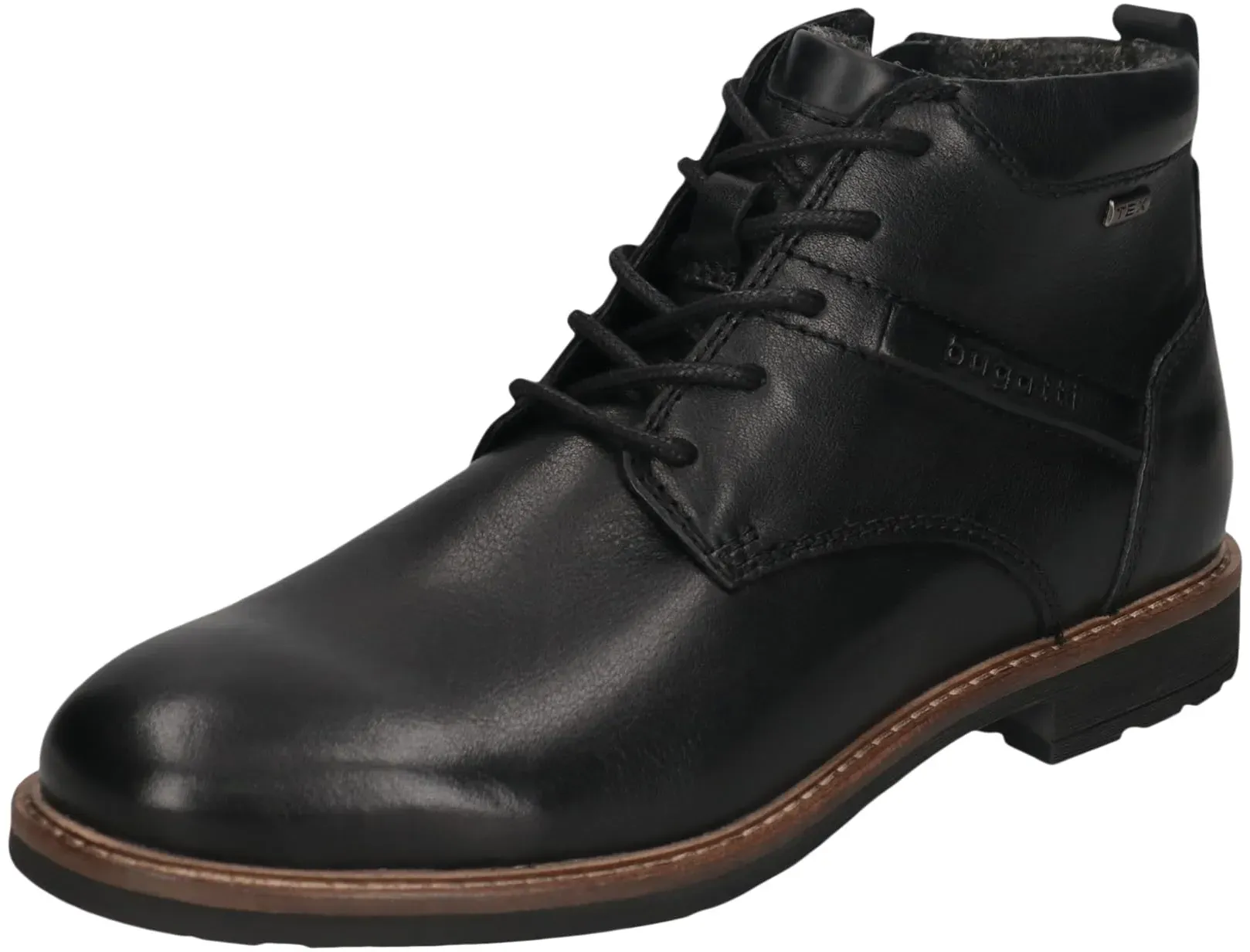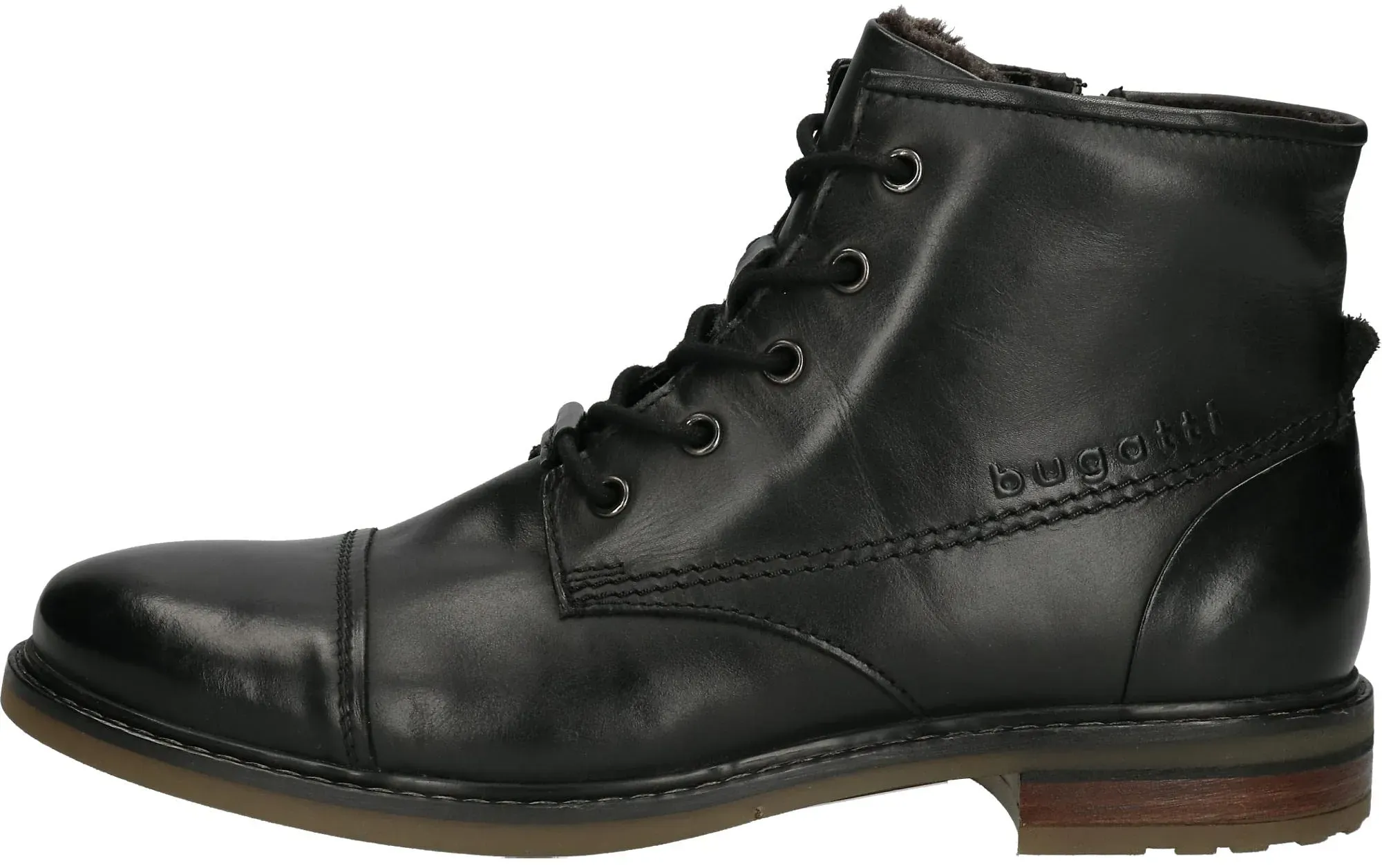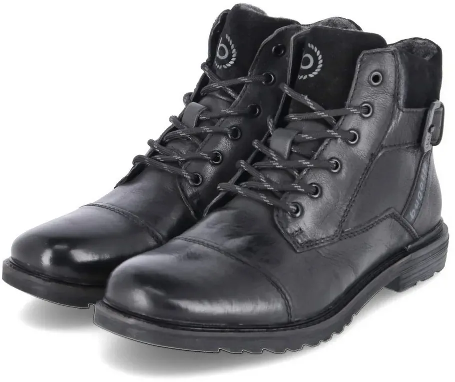 Verfügbarkeit: 2-3 Werktage - Kategorie: Herrenstiefel - Bugatti - GTIN:4066611933720 - Sportiver Herrenboot mit Warmfutter aus dem Hause bugatti aus einem feinen hochwertigem Glattleder.Dieses Leder verleiht einen edlen Look und ist gut zu pflegen. Für einen angenehmen Tragecomfort ist das weiche und wärmende Futter zuständig. Durch die auswechselbare Decksohle ist es möglich, eigene Einlagen zu verwenden. Geschnitten ist die Form für normal breite Füße (Weite F). Der stabile Blockabsatz hat eine Höhe von cirka 1 cm ,für gute Bodenhaftung sorgt die abriebfeste und griffige Gummisohle. Eine praktische Schnürung vollendet den klassischen Look und erleichtert Ihnen den Einstieg. Die medium Schaftweite passt sehr gut für alle normalweiten Waden. Durch die runde Schuhspitze wirkt der Schuh dezent am Fuß und bietet genügend Platz für die Fußzehen. Die Schuhgröße fällt regulär aus. Bugatti Schnürstiefeletten für Herren in Braun - 120,00 Euro bei Kaufland.de - gefunden von billiger.de Diese schwarzen Schnürstiefel aus Leder sind eine klassische und vielseitige Wahl für verschiedene Outfits und Anlässe. ![]() ![]() bugatti Bugatti 321A0U3W3200-1000 Herren Leder schwarz Schnürstiefel schwarz 40 EU