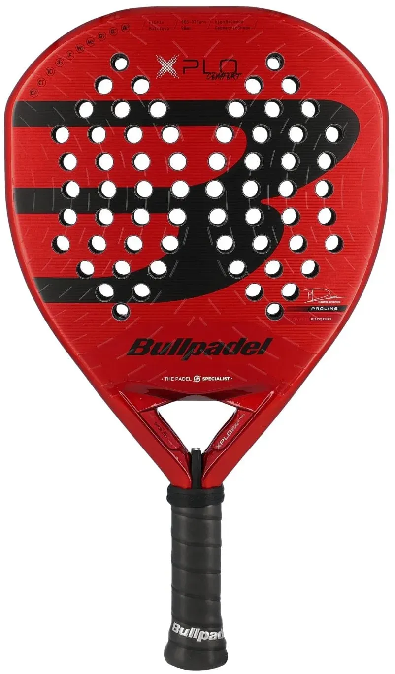 Kategorie: Tennisschläger - Bullpadel - GTIN:8445402691906 - Der Bullpadel XPLO 2025 ist Bullpadels stärkste Diamantschaufel. Entwickelt für fortgeschrittene und professionelle Spieler mit offensivem Spiel. Es beinhaltet fortschrittliche Technologien wie Smart Holes, Custom Weight, Hesacore und Vibradrive. Das schwarz-rote Design und die geometrische Struktur sorgen für eine explosive Leistung. - 149,90 Euro bei Amazon Marketplace Sports - gefunden von billiger.de Dieser Padelschläger kombiniert Komfort mit guter Spielbarkeit und ist eine gute Option im mittleren Preissegment. ![]() ![]() Bullpadel Xplo Comfort 26