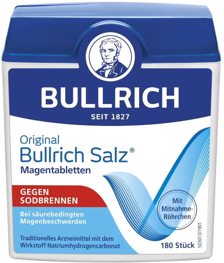 Verfügbarkeit: Lieferbar in 1-2 Werktagen - 0,02 €/St - Kategorie: Arzneimittel - Delta Pronatura - GTIN:4008455037615 - PZN:03977089 - Original Bullrich Salz hilft bei Sodbrennen und säurebedingten Magenbeschwerden. Nach schwerverdaulichen Speisen übermäßigem Alkohol- und Kaffeegenuss neutralisiert Original Bullrich Salz überschüssige Säuren im Magen und fördert somit das Wohlbefinden. Bullrich Salz enthält als einzigen Wirkstoff Natriumhydrogencarbonat ein wichtiger Bestandteil vieler Heil- und Mineralwässer und daher so natürlich wirksam. - 3,63 Euro bei medpex.de - gefunden von billiger.de Ein solides Angebot für die 180-Stück-Packung von Beraterapotheke. ![]() ![]() Delta Pronatura Bullrich Salz Tabletten 180 St