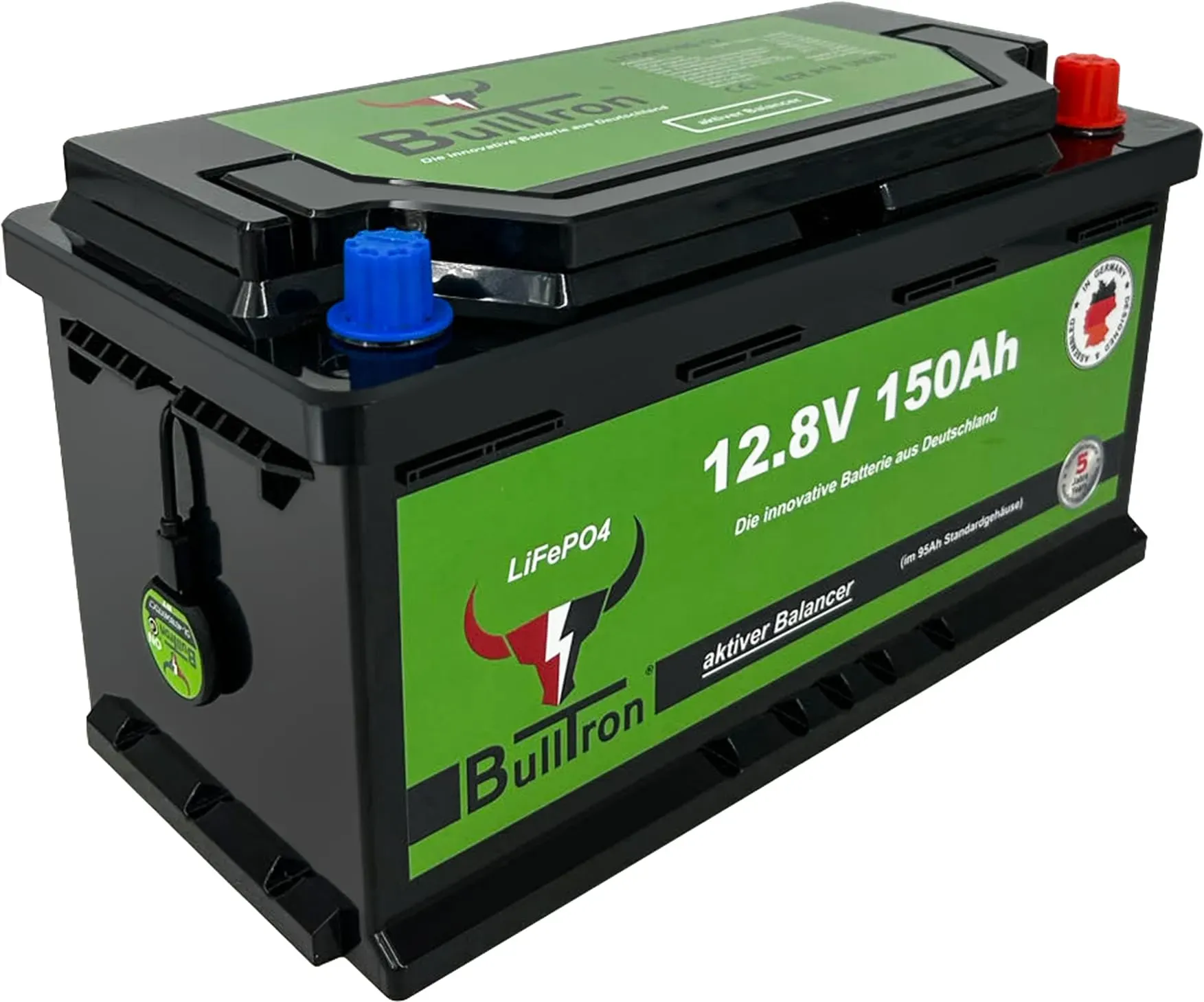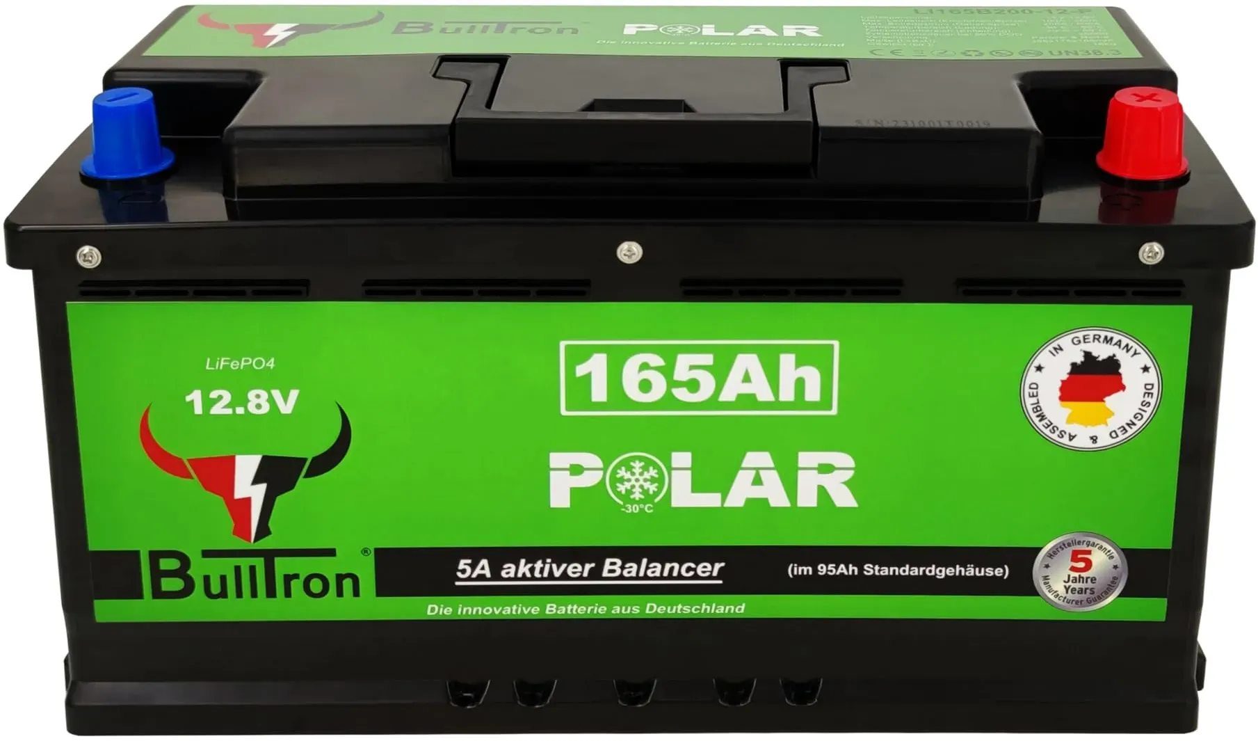 EAN: 4262358250407 - 185Ah BullTron Polar | die kleine starke Lithiumbatterie im Original Gehäuse einer 95Ah Blei-BatterieKleiner Camper oder Bulli, wenig Platz, moderater Stromverbrauch - dafür wurde diese 185Ah Lithiumbatterie konzipiert. Diese Batterie hat die gleichen Abmessungen, Befestigungspunkte und Polanschlüsse wie bei einer originalen 95Ah Blei/GEL/AGM Batterie.Diese 185Ah Lithiumbatterie ersetzt eine GEL oder AGM Batterie mit einer Kapazität bis zu 370Ah, bei 12V. Dabei nimmt sie viel weniger Raum ein, und ist um einiges leichter als herkömmliche Bleibatterien. Auch können die BullTron Batterien liegend installiert werden.Die Installation ist denkbar einfach: alte Batterie raus, neue Batterie rein, fertig. In dieser Lithiumbatterie ist alles Notwendige mit drin. Im Regelfall können vorhandene Ladegeräte beibehalten werden. Auf Wunsch kann eine zweite Batterie dazu gepackt und parallel verschaltet werden. Entwickelt und konfektioniert in Deutschland. BullTron ist ein deutscher Hersteller, und so finden auch Service und Reparatur in Deutschland statt.Langlebigkeit. Mit über 6.000 Zyklen (bei 80% DOD) werden Sie mit dieser Lithiumbatterie sehr lange Freude haben.Super kompakt. Wie alle LiFePO4 von BullTron ist auch die 185Ah Variante extrem klein und passt dadurch in die Sitzkonsole von Ducato, Bulli und Co sowie in Zwischenböden und an den Platz der vorhandenen 95Ah Batterien.Integrierte starke Heizung mit höchst möglicher Effektivität und Effizienz (extrem ... Dieses Modell bietet eine hohe Kapazität und einen starken Dauerstrom, ideal für größere Energiebedürfnisse. ![]() ![]() BullTron BullTron Polar 185Ah inkl. Smart BMS 200A Dauerstrom Bluetooth App Batterie