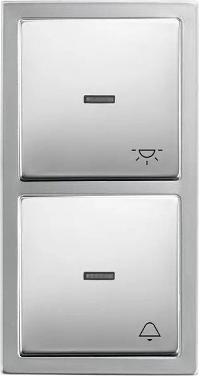 EAN: 4065641679103 - Busch Jäger Klingel & Lichtschalter Set , Glocken- & Klingel Symbol 1x Taster 2020 USGL (permanent beleuchtet) 1x Schalter 2000/6 USGL (permanent beleuchtet)- 2 fach Rahmen - PUR Edelstahl Busch Jäger Komplettset 1 x Klingel-Tastschalter, 1 x Lichtschalter beleuchtetInklusive 2 fach RahmenPUR Edelstahl Busch Jäger Wählen Sie Ihre gewünschten Produkte aus und klicken Sie auf 'in den Warenkorb'. Sobald Sie alle benötigten Artikel im Warenkorb haben, klicken Sie auf 'Weiter zur Kaufabwicklung' um den Einkauf abzuschließen. So ist sichergestellt, dass wir Ihnen alles zusammen in einem Paket schicken können. - bei kaufland.de - aus Yadore Produktdaten Das teuerste Set in dieser Auswahl, bietet es eine Premium-Lösung in PUR Edelstahl mit allen notwendigen Funktionen und Zubehör. ![]() ![]() Busch Jäger Klingel & Lichtschalter Set, Glocken & Klingel Symbol, Taster permanent beleuchtet Typ 2020 USGL + Wippen mit Rahmen in PUR Edelstahl + EBROM Phasenprüfer zur Montage der Geräte