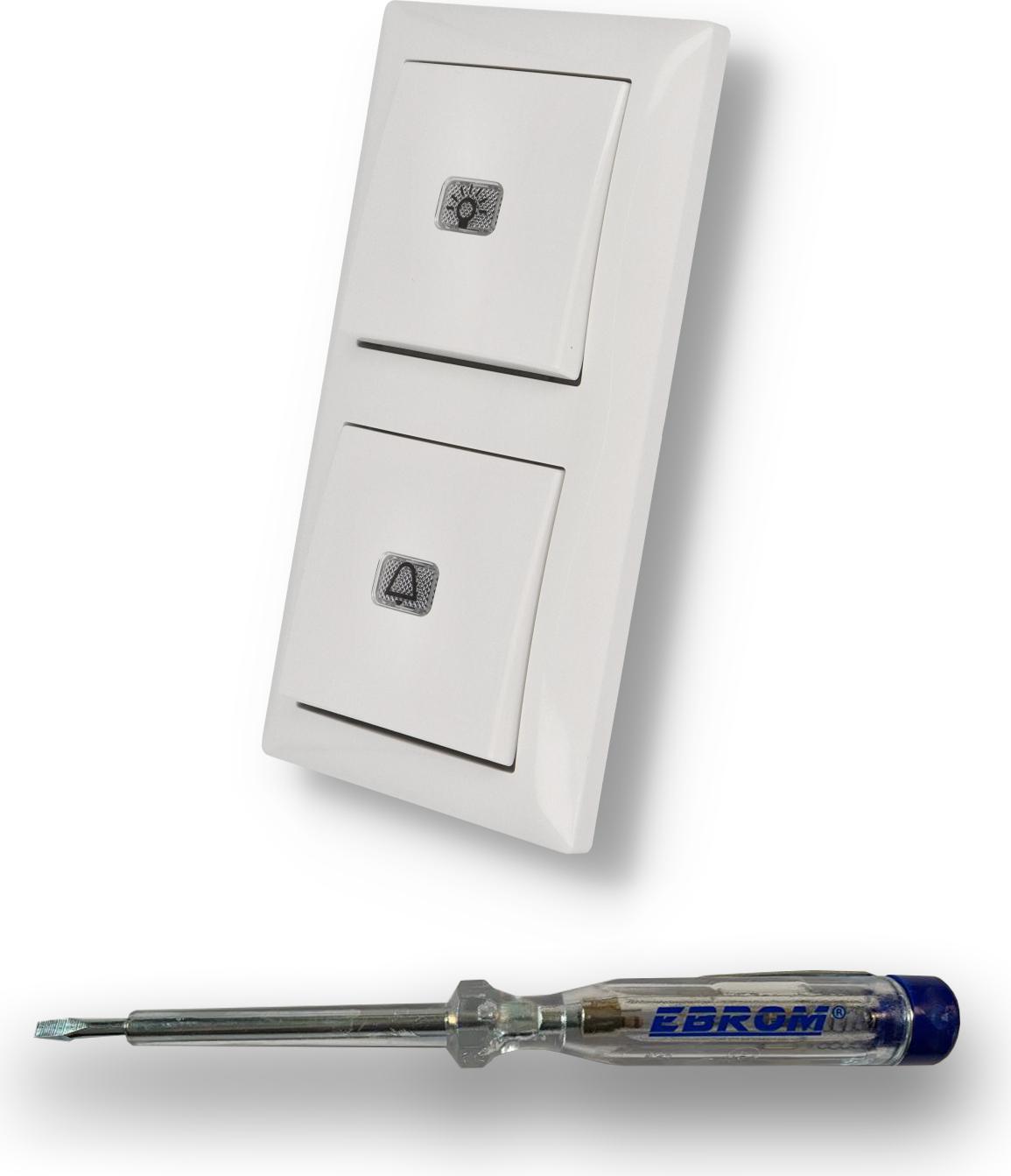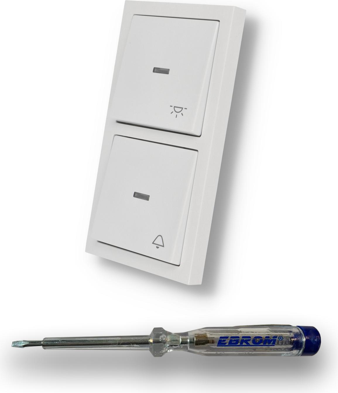 Zustand: Neu - Lichtschalter Elektrotechnik Lichtschalter - EBROM SET IDEE Busch Jäger / EBROM - BJ-Klingel-Licht-Balance-2x2020USGL+Pha - EAN: 4065641666752 - Busch-Jaeger Komplettset - Dieses Komplettset besteht aus einem beleuchteten Klingeltaster und einem beleuchteten Licht-/Tastschalter. Die beiden hochwertigen Busch-Jaeger 2020 USGL-Tastschalter bieten klare Symbole für Klingel und Licht, intuitive Bedienung und ein stilvolles Design. Dank der beleuchteten Symbole sind Klingel und Licht sofort sichtbar, auch in dunklen Umgebungen. Ideal für Wohn- und Geschäftsbereiche, aus langlebigen Materialien gefertigt für eine lange Lebensdauer. 2 x mit transparenter Kalotte zur Darstellung des Orientierungslichts, die Symbole 'Licht' und 'Klingel' sind auf die Wippe aufgedruckt, inklusive 2-fach Rahmen in Balance Si alpinweiß glänzend Einbaufertig für Sie zusammengestellt durch die Kabelprofis von EBROM inkl. EBROM Phasenprüfer zur einfachen Montage der Licht- und Klingel Kombination Hersteller Schalter Klingel, Wippen und Rahmen: BUSCH JÄGER; Hersteller Phasenprüfer: EBROM; EINE SET IDEE VON EBROM - Verkäufer: EBROM ® im amazon.de Marketplace Dieses Set ist eine gute Wahl für ein modernes Design in alpinweiß mit Balance Si und inklusive Phasenprüfer. ![]() kaufland.d e Busch-Jaeger Busch Jäger Klingel & Lichtschalter Set, Glocken & Klingel Symbol, Taster permanent beleuchtet Typ 2020 USGL + Wippen mit Rahmen in Balance Si alpinweiß + EBROM Phasenprüfer zur Montage der Geräte