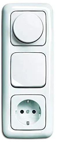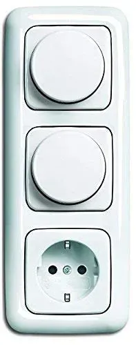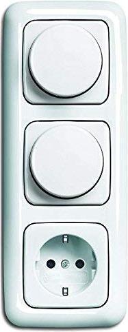 Kategorie: Schalter - EBROM's BJ Sets - GTIN:8944141706983 - Busch-Jaeger (Original) LED Drehdimmer Typ 6523 U-102 Inklusive 3 fach Rahmen - Inklusive Steckdose mit integriertem Kinderschutz - Inklusive Wippschalter mit Wippe Komplett einbaufertig für Sie zusammengestellt Alpinweiß - Reflex SI - 143,78 Euro bei Amazon Marketplace Automotive - gefunden von billiger.de Dieses Set mit zwei LED-Drehdimmern und 3-fach Rahmen inklusive Steckdose mit Kinderschutz ist ideal für größere Projekte oder mehrere Lichtkreise. ![]() ![]() EBROM's BJ Sets LED Dimmer Set BUSCH JäGER, 2 x LED-Drehdimmer -alpinweiß- -Reflex SI- 6523-U 102 (6523 U-102) 3 fach Rahmen + Steckdose mit integriertem Berührungsschutz (Kinderschutz)
