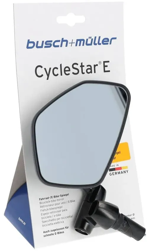 Zustand: Neu - Spiegel Fahrradspiegel - busch+müller B&M - 2321027300 913/712VLGE-3 - EAN: 4006021012660 - langer Arm mit Schelle oder Kunststoffadapter Schützende. umlaufende Weichkomponente Extrem verstellbar - Verkäufer: MotorsportGoetz im amazon.de Marketplace ![]() ![]() Busch & Müller Busch & Müller Unisex Erwachsene Star Fahrradspiegel, Schwarz, 14.5-18.5mm