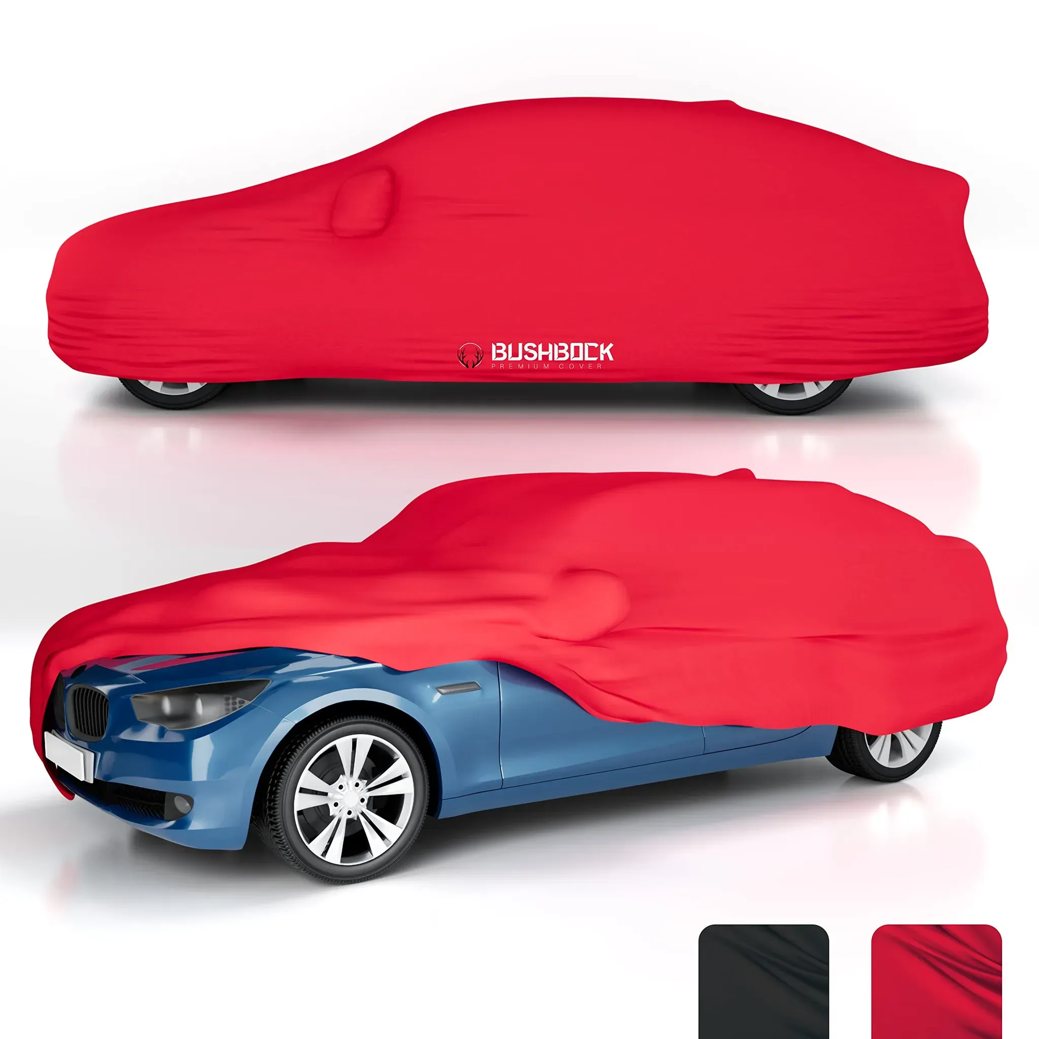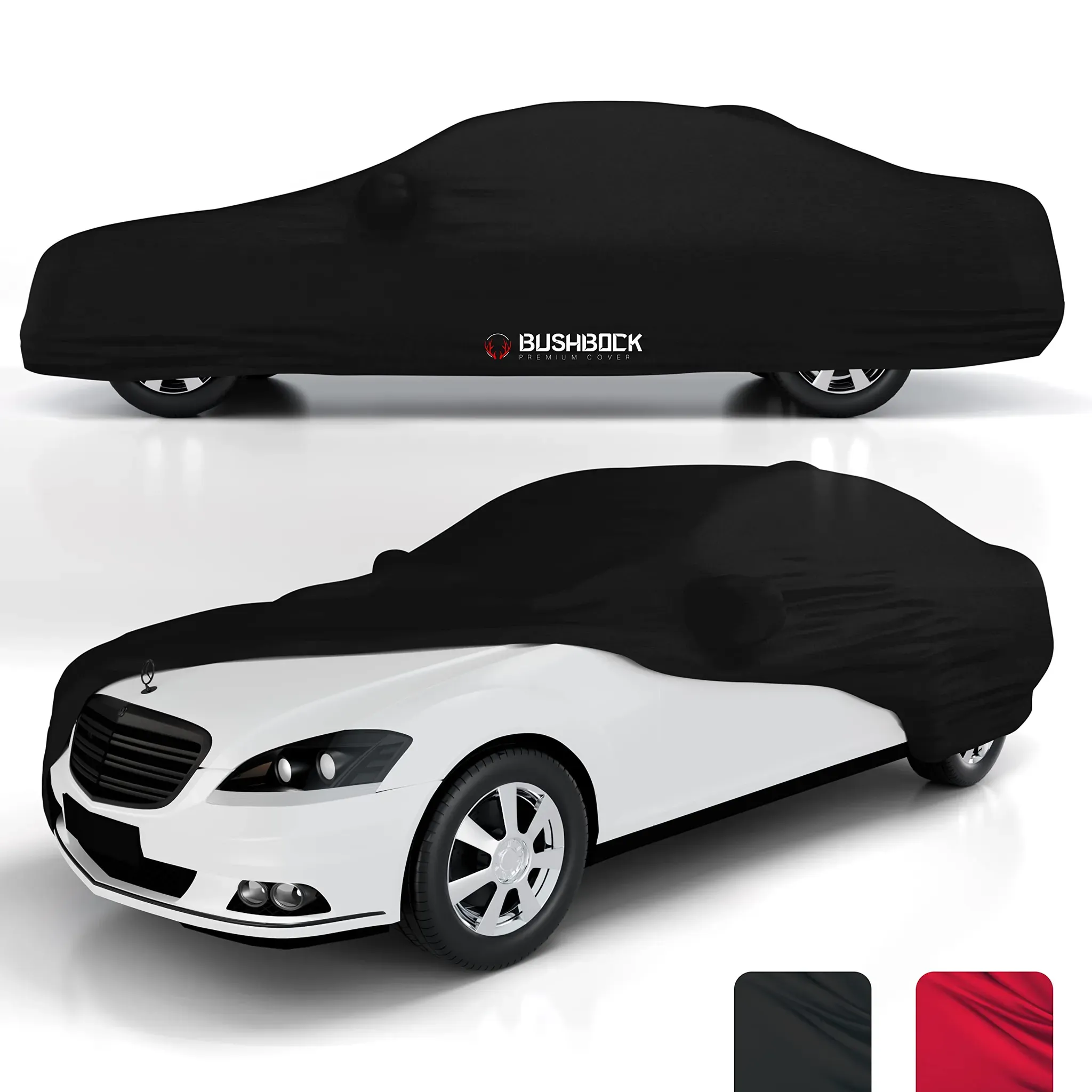 Auf Lager Versand durch AmazonBUSHBOCK® Premium Autoabdeckung Indoor - Satin Schutzhülle Stoff - Abdeckplane Autoplane Autogarage Innenbereich - 2 Farben, 4 Größen (Schwarz, XL)