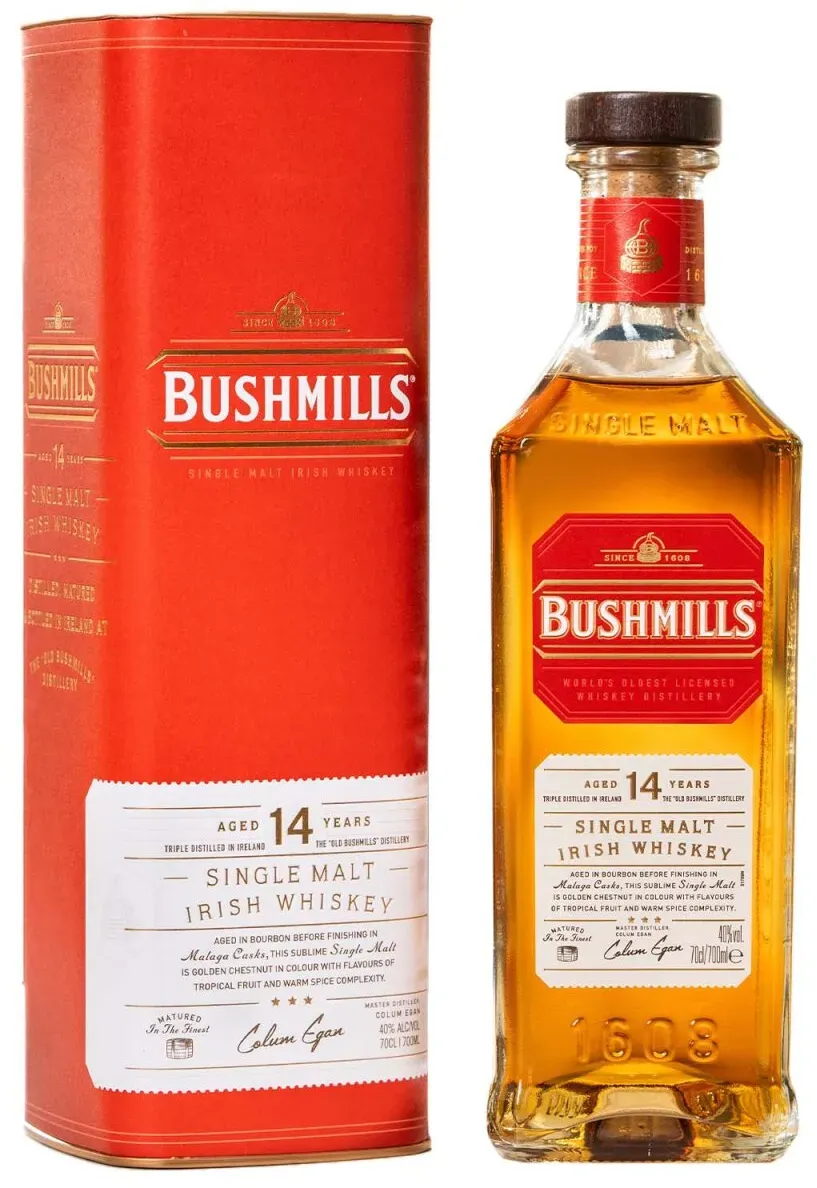Verfügbarkeit: 1 bis 2 Tage - Kategorie: Whisky - Bushmills - GTIN:5011007006235 - Single Malt Irish Whiskey, 40%vol Süßer Start mit Malztönen, Honig, Vanille und etwas Sherry, zum Ende hin trockener - 25,75 Euro bei Beowein - gefunden von billiger.de Dieser 14-jährige Single Malt mit Malaga Cask Finish bietet ein einzigartiges und fruchtiges Geschmacksprofil. ![]() ![]() Bushmills 14 Jahre - Malaga Cask Finish - Single Malt Irish Whiskey