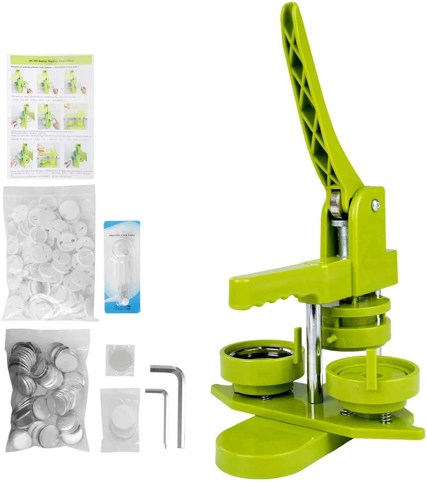 Auf Lager Versand durch AmazonVEVOR Buttonmaschine Knopfmachermaschine Badge Punch Press 58 mm rund, Pinmaker mit 100 Knopfteilen & Kreisschneider & verstrkter ergonomischer Griff, DIY Badge Press Machine Grn