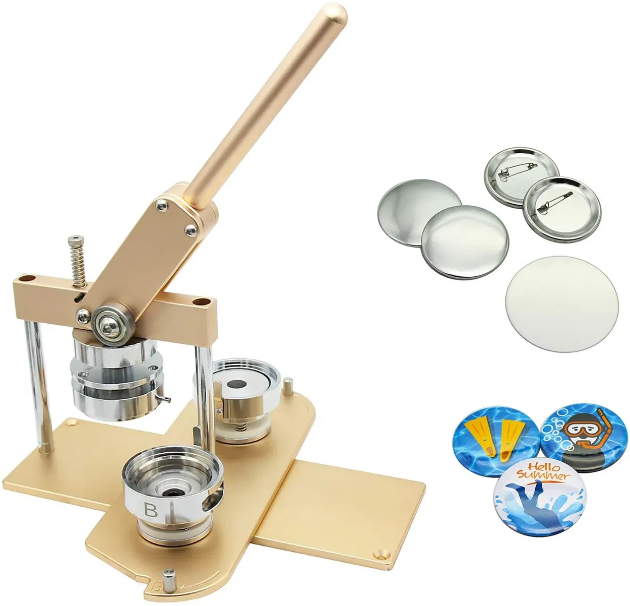 Verfügbarkeit: Auf Lager - Kategorie: Sonstige Elektroinstallationsartikel - GooDCrafter - 2-in-1-Kühlschrankmagnet- und Knopfmacher-Maschine Diese quadratische Doppelzweck-Kühlschrankmagnete ermöglicht es Ihnen, sowohl Kühlschrankmagnete als auch Abzeichen-Pins zu erstellen und bietet Vielseitigkeit für verschiedene Bastelarbeiten. Egal, ob Sie wertvolle Erinnerungen wie selbstgemachte Gemälde, Familienfotos, berühmte Kunstwerke, Lieblings-Cartoon-Figuren oder Reise-Souvenirs bewahren möchten, diese Maschine macht es einfach, sie in einzigartige, personalisierte Andenken zu verwandeln. Es ist die ideale Wahl für Bastler aller Altersgruppen und Fähigkeitsstufen 550 Stück kostenlose DIY-Teile Das quadratische Knopfhersteller-Set enthält alles, was Sie brauchen, um individuelle Knöpfe und Kühlschrankmagnete zu erstellen. Das Set wird mit 1 quadratischen Knopfmaschinen, 100 Knopfabdeckungen, 100 Stück Knopfrücken, 100 magnetischen Aufklebern, 50 Nadeln, 100 quadratischen leeren Papieren, 100 transparenten Folien, einer Geschenkbox und einer Bedienungsanleitung (evtl. nicht in deutscher Sprache) geliefert. Alle wichtigen Dinge sind enthalten für ein nahtloses Bastelerlebnis Upgrade 3. Generation, frei von Montage Wir haben Kühlschrankmagneten und Knöpfe mit unserer Maschine der 3. Generation auf die nächste Stufe gebracht keine Montage erforderlich. Sparen Sie Zeit und Mühe. Der ergonomische Griff und die drehbare Halterung machen es super ... Das ChiButtons Kit ist ein hochwertiges Set mit verstellbarem Kreisschneider und 100 Pin Button Komponenten, ideal für professionellere Anwendungen. ![]() ![]() ChiButtons Kit 58 mm (2 1/4 Zoll) Button Maker Badge Press Machine B400 + 58 mm runde Stanzformen + 100 Set Pin Button Components + verstellbarer Kreisschneider (Golden-New)