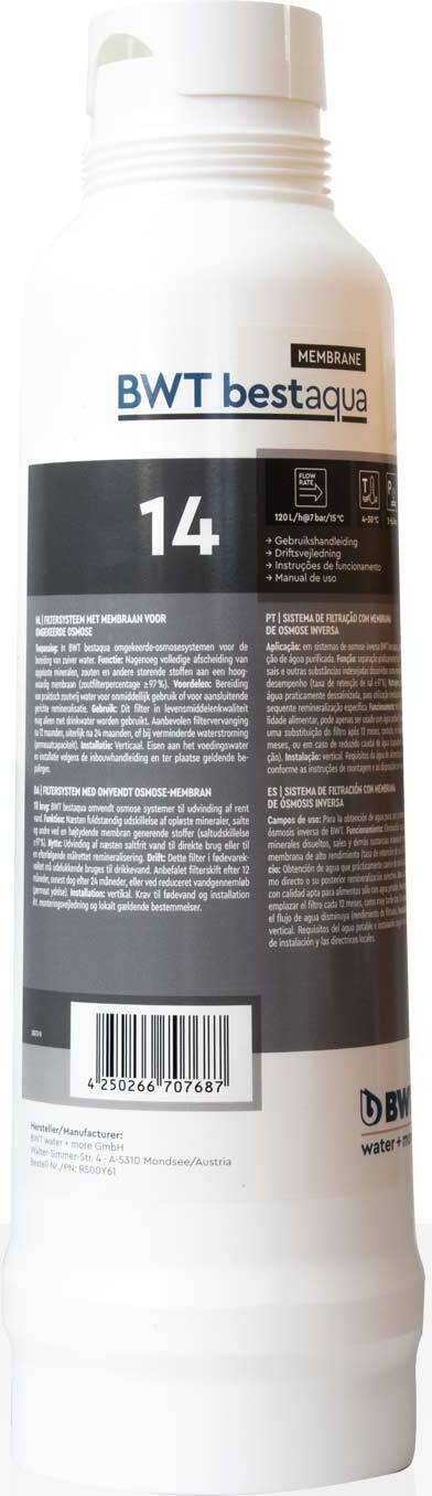 BWT - EAN: 4250266707687 - BWT bestaqua 14 Membrane Filterkerze, Filterkartusche, FilterpatroneHocheffiziente Umkehrosmose-Membran in Filterkerzenform BWT bestaqua MEMBRANE ist ein Meilenstein in dem einfachen und sicheren Einsatz von Umkehrosmose-Membranen. Noch nie war die Installation und der Austausch einer Umkehrosmose-Membran so unkompliziert möglich. Einfach Filterkerze heraus- und wieder hineindrehen in den vorinstallierten BWT besthead Filterkopf - fertig, alles ohne Werkzeugeinsatz. Das aufwändige Lösen verschiedener Schlauchverbindungen entfällt vollständig. Darüber hinaus sichert der speziell von BWT entwickelte Aufbau dieser Filterkerze durch seine intelligente Kombination von Umkehrosmose-Membranen, Spacern und interne Wasserführung eine hohe Effizienz, Robustheit und Langlebigkeit, ideal für den täglichen Einsatz in der Gastronomie. Technische Vorteile von BWT bestaqua 14 MEMBRANEHohe PermeatleistungHohe SalzabscheiderateEinfachste Installation und FiltertauschUnempfindlich gegen Partikel und Chlo - bei kaufland.de - aus Yadore Produktdaten Die BWT bestaqua 14 MEMBRANE Filterkerze ist eine weitere Option für extrem reine Wasserqualität durch Membranfiltration. ![]() ![]() BWT bestaqua - 14 MEMBRANE eBay Filterkerze, Filterkartusche, Filterpatrone