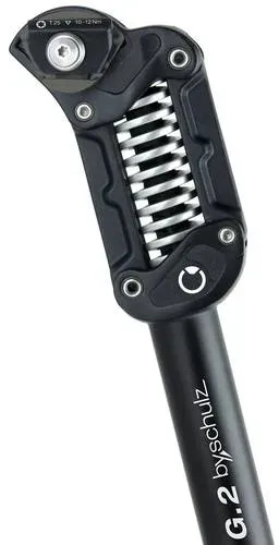 by.schulz - EAN: 4251239308122 - by.Schulz spring seat post G.2 LT - Parallelogram seat post - fine response behaviour, high driving comfort - Comfortable: spring elements 45-150kg- IGUS Polymer high performance plain bearings - Aluminium 3 D forged, black anodized - Saddle clamp: fine adjustment with robust ratchet and defined adjustment range with stop - easy spring and saddle change - total length: 380-670mm / tube can be shortened - installation height: 130mm - Spring travel approx. 50mm- 27,2-34,9mm, from 640g - low weight - loadable up to 150kg driver weight - bei fahrrad24.de - aus Yadore Produktdaten Ein gutes Angebot für eine Federsattelstütze mit hartem Federweg und gängigem Durchmesser. ![]() ![]() By Schulz by.schulz G.2 LT 31,6mm, L480mm schwarz hart