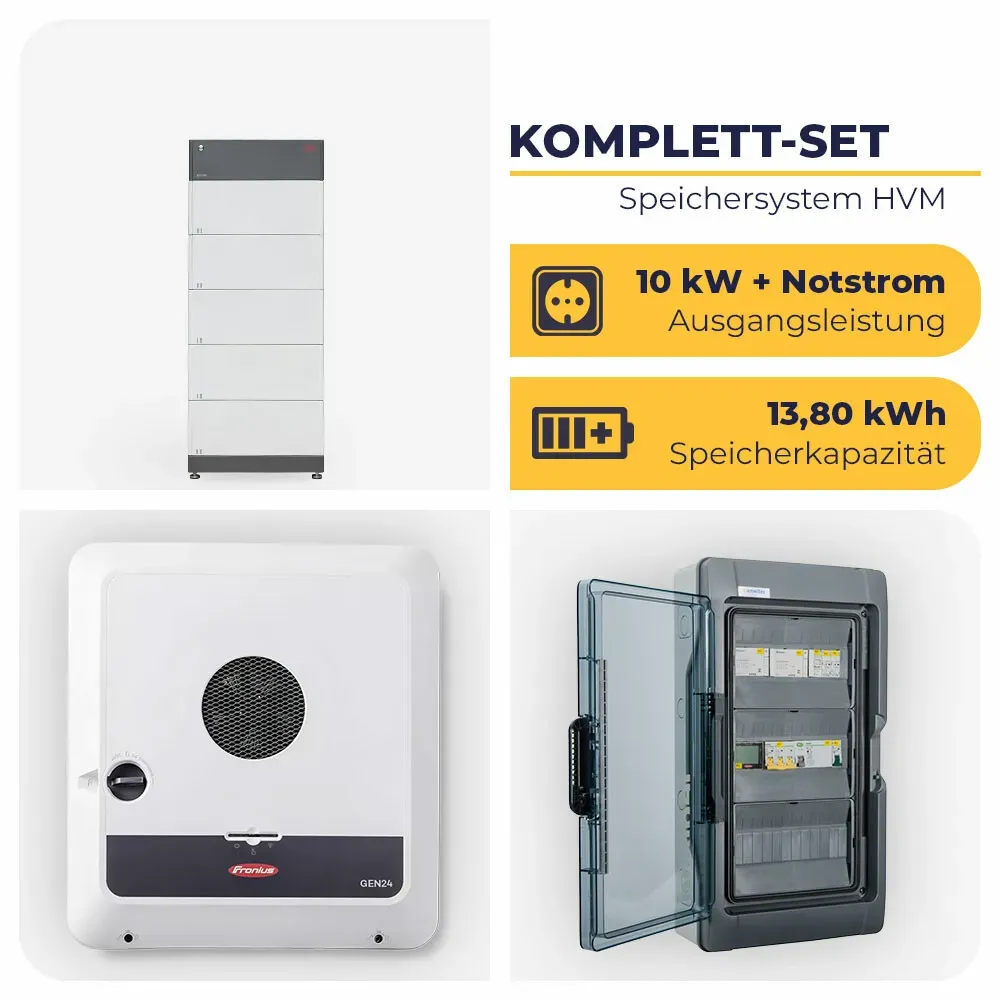 Kategorie: Stromspeicher - BYD - GTIN:4250889671419 - Battery Box Premium HVM 22.1 Energy Storage SKU: SAM6606 Complete battery package | 22.1kWh - 6333,79 Euro bei Toms Car HiFi - gefunden von billiger.de Dieses Set kombiniert einen Fronius Symo Gen24 10.0 Plus Wechselrichter mit einem 13,8 kWh BYD Speicher und bietet Notstromfunktion für erhöhte Sicherheit. ![]() ![]() Set Fronius Symo Gen24 10.0 Plus mit Notstrom + BYD Battery-Box Premium HVM 13,80 kWh