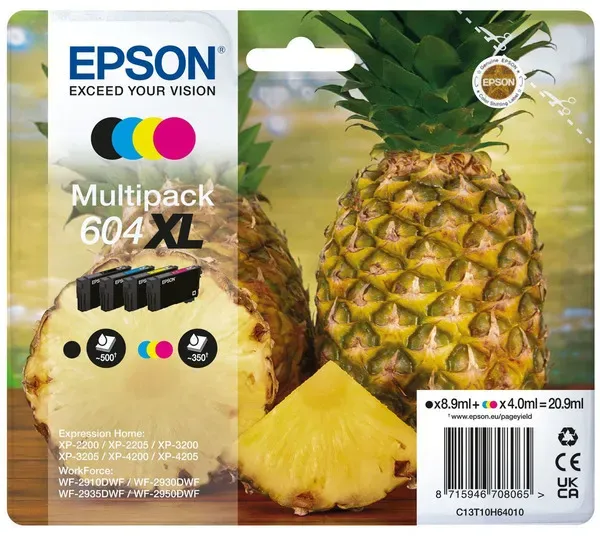 Auf Lager Versand durch AmazonEpson Orginal 604XL Tinte Ananas Multipack 4-farbig 604XL, XP-2200 XP-2205 XP-3200 XP-4205 WF2910DWF WF2930DWF WF2950DWF, ReadyPrint Flex-Tintentarife