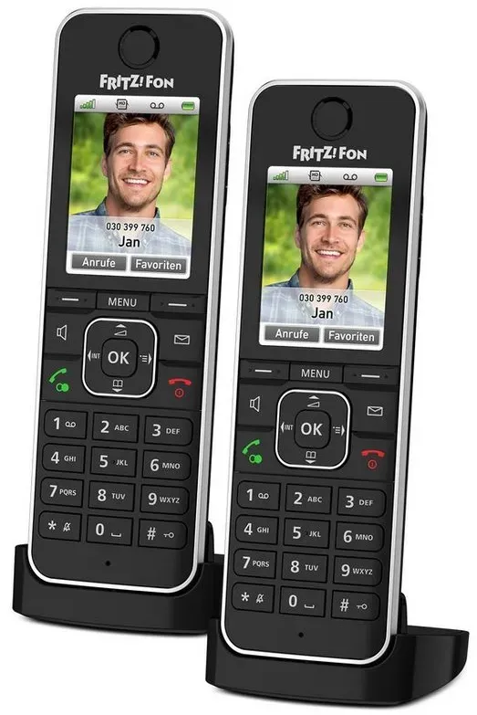 4 Händlerangebote bei billiger.de - Kategorie: Schnurlose Telefone - AVM - Hochwertiges Farb-Display, übersichtliche Menüführung Brilliante HD-Telefonie, Full-Duplex-Freisprechen Internet/Komfortdienste (E-Mail, Webradio, Livebild von Webcams,..) bis zu 15h Gesprächszeit - bis zu 240h Stand-by-Zeit Headset-Anschluss für freihändiges Telefonieren und Musikhören Das FRITZ!Fon C6 ist das Multitalent für Telefonie und Smart Home. - GTIN:4023125028489 Dieses 2er Pack in Schwarz bietet zwei FRITZ!Fon C6 zu einem guten Preis und ist ideal für Haushalte mit mehreren Telefonen. ![]() ![]() AVM 2er Pack FRITZ!Fon C6 DECT-Telefon, Schwarz Farbdisplay 180 ppi, beleuchtete Tastatur