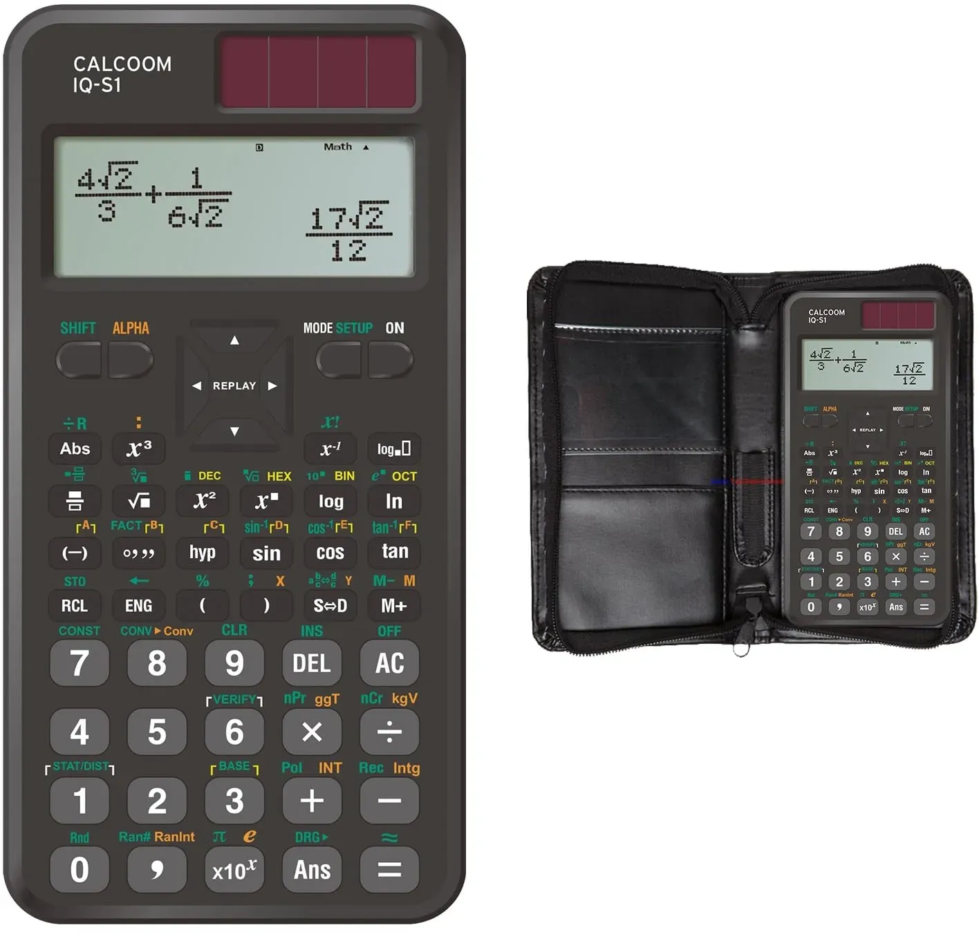 Kategorie: Taschenrechner - calcoom - GTIN:4260234195682 - Funktionen: 40 physikalische Konstanten, Einheitenumrechnungen, ganzzahlige Zufallszahlen, Periodischer Dezimalbruch, neue Eingabemöglichkeit für Brüche, deutsche Menüführung, ggT und kgV-Funktion, Verify-Funktion, Wiederholungsfunktion, Variablen Speicher (9), STO/RCL-Taste Wissenschaftliche Funktionen: Trigonometrische und invers trigonometrische Funktionen, Hyperbolische und invers hyperbolische Funktionen, Exponentialfunktionen 10x, ex , Umkehrfunktion x-1, Potenz - und Wurzelfunktionen, Logarithmusfunktionen (log, ln) , Kombinatorik und Permutation, Zufallszahlengenerator, Umrechnung von Polarkoordinaten in rechtwinklige Koordinaten und invers , Bruchrechenautomatik, Umrechnung von Sexagesimal in Dezimal und invers , Berechnungen in Neugrad, Altgrad und Bogenmaß, SCI/FIX/ENG Funktion Statistik: Listen basierte Statistik, Statistik mit einer Variablen, Standardabweichung, Statistik mit zwei Variablen (Regressionsfunktionen), Linear, Exponential, Logarithmisch, Potenz, Invers, Quadratisch Natürliche Eingabe: Brüche , Wurzeln, Potenzen, Klammern, Beträge, Logarithmen zugelassen in ganz Deutschland - 39,95 Euro bei Amazon Marketplace CE - gefunden von billiger.de ![]() ![]() calcoom IQ-S1 + 5 Jahre Garantie + Schutztasche