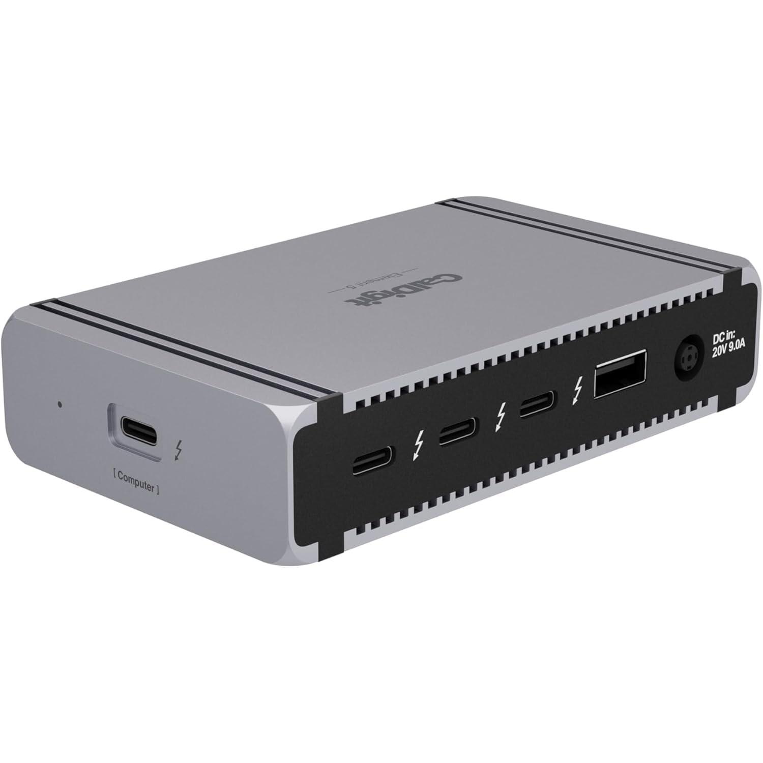 Zustand: Neu - Dockingstationen Dockingstationen für tragbare Computer - CalDigit - - EAN: 4711233240786 - 18 Anschlüsse für extreme Konnektivität - mit beeindruckenden 18 Anschlüssen bietet der TS4 genug Konnektivität für selbst die anspruchsvollsten Workflows. Dazu gehören ein integrierter DisplayPort 1.4-Anschluss, insgesamt 8 x USB-Ports mit voller 10 Gbit/s Leistung, SD- und microSD 4.0 UHS-II Kartenleser, 3 x Thunderbolt 4 (40 Gb/s) Ports, 3 x Audioanschlüsse, 2,5 GbE und ein Sicherheitssteckplatz. Leistungsstarke 98-W-Aufladung - Die Stromversorgung des TS4 ist ideal für jedes Thunderbolt- oder USB-C-Host-Gerät, einschließlich größerer Bildschirm-Laptops, die mehr Leistung benötigen. Ein einziges Kabel lädt Ihren Laptop auf und verbindet gleichzeitig 18 Geräte. Einzel-8K oder Dual-6K 60Hz Displays - Windows-Benutzer können einen einzelnen Monitor mit bis zu 8K Auflösung verbinden. MacOS-Nutzer können ein einzelnes Display bis zu 6K 60Hz verbinden. Für alle, die Dual-Displays hinzufügen möchten, können Windows-Benutzer bis zu zwei 4K 60Hz Monitore anschließen. Benutzer auf M1 Pro und M1 Max können bis zu zwei 6K 60Hz Displays anschließen, während Benutzer auf Intel-basierten Macs bis zu zwei 4K 60Hz Displays verbinden können. Nutzer auf original M1 Macs sind nur auf ein einzelnes Display beschränkt. 2,5 Gigabit Ethernet - Der 2,5 GbE Port des TS4 ist 2,5 x schneller als Standard 1 GbE, sodass Benutzer eine Verbindung zu schnelleren Netzwerken, Routern und ... ![]() ![]() CalDigit TS5 Thunderbolt 5 Dock, 15 Ports, 140 W dediziertes Hostladen, 80 Gb/s Thunderbolt 5 x4, USB-C 10 Gb/s x3, USB-A x2, 2,5 GbE, Dual 8K @ 60Hz, SD & microSD UHS-II, 1 m geflochtenes Kabel, 240
