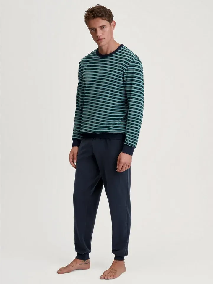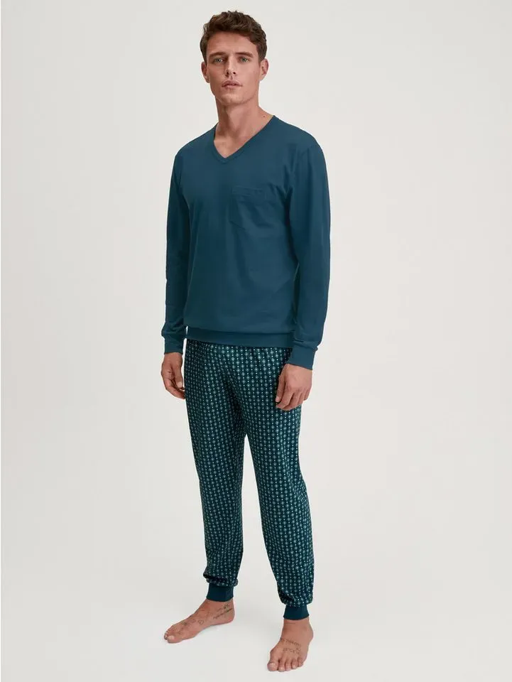 Auf Lager Versand durch AmazonCALIDA Relax Essentials Bündchen-Pyjama Herren, aus 100% Bio-Baumwolle, Hose mit stoffbezogenem Gummibund