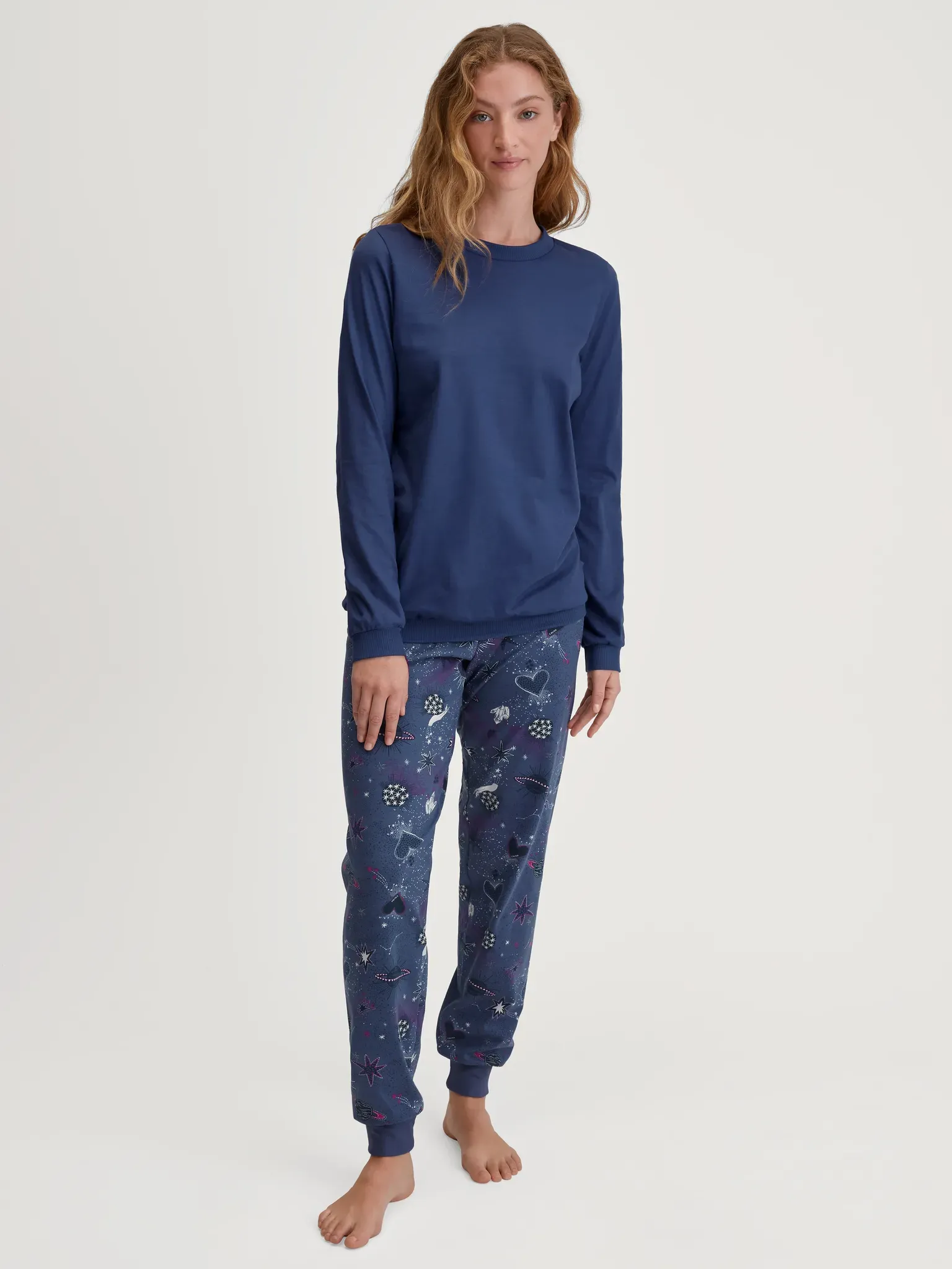 1 Stück / EUR 111,99 - Wäsche & Bademode Themen & Trends Neuheiten Damenwäsche Unterwäsche & Dessous - EAN:7613381421420 - Farbe: Farbbezeichnung: pearl blush, Ausschnitt: Ausschnitt: Rundhals, Ärmel: Ärmellänge: Langarm, Ärmelabschluss: angesetztes Bündchen, Verschluss: Verschluss: Gummizug, Passform/Schnitt: Schnittform Länge: lang, Beinform: gerade, unten schmal, Beinabschluss: angesetztes Bündchen, Leibhöhe: normal, Bundabschluss: elastischer Bund, Bundabschlussdetails: mit Gummizug, Material: Materialart: Interlock, Materialeigenschaften: atmungsaktiv, elastisch, wärmend, Materialzusammensetzung: Obermaterial: 100% Baumwolle, Pflegehinweise: 40°C Maschinenwäsche, Serie: Serie: Midnight Flowers - gefunden von Kelkoo Ein Damen-Schlafanzug aus 100% Baumwoll-Single Jersey mit V-Ausschnitt, der Weichheit und eine bequeme Passform bietet. ![]() Schlafanzug CALIDA 'Midnight Dreams', Damen, Gr. L (48/50), peacoat blau, Single Jersey, Obermaterial: 100% Baumwolle, bequem lang, V-Ausschnitt, Homewear-Sets, V-Ausschnitt, Langarm, Single Jersey Qualität, weich