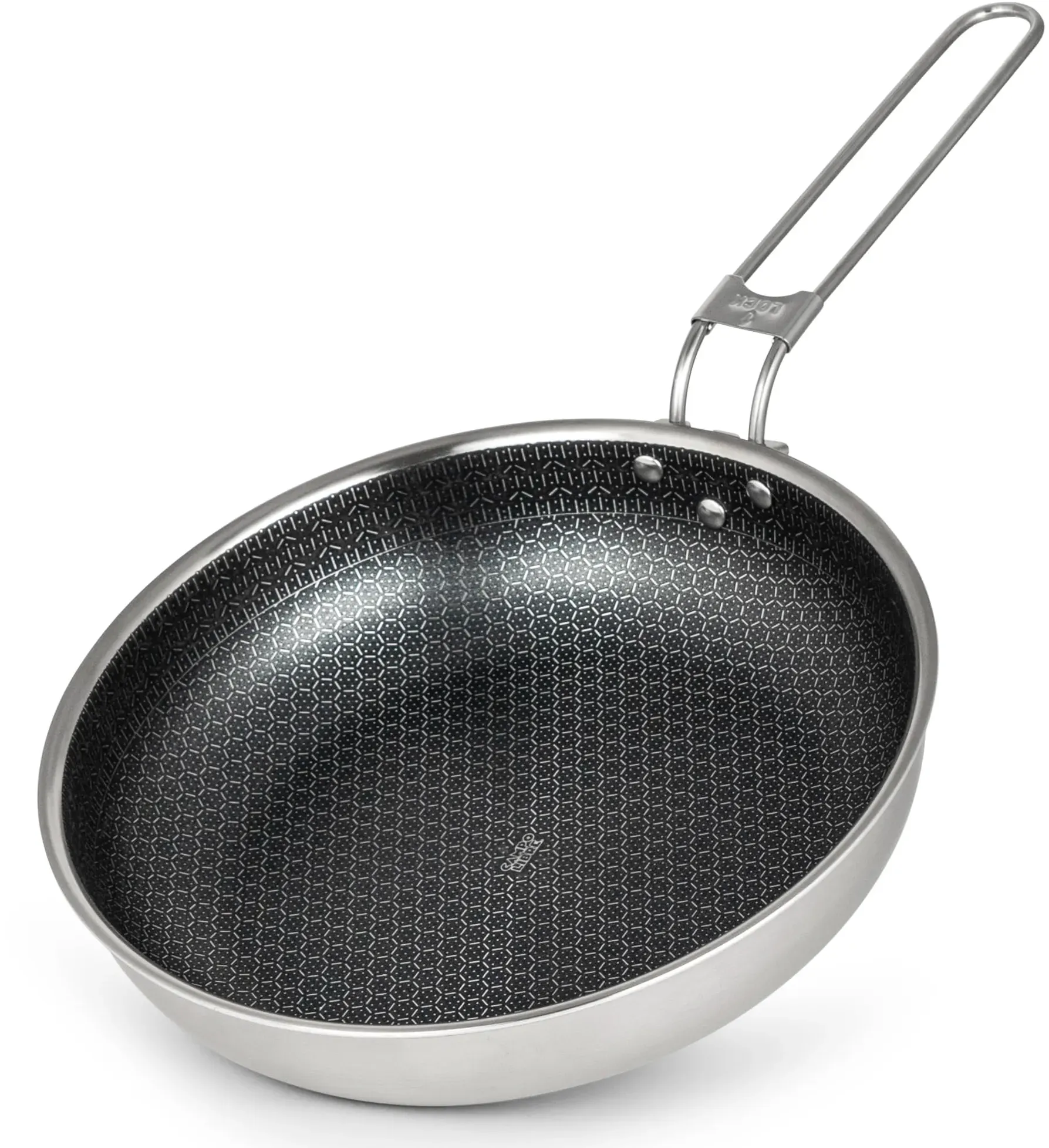 Kategorie: Campingkocher - Campo Libre. - GTIN:4260765251475 - HexaGuard-Technologie Diese Technologie setzt auf eine erhöhte Edelstahl-Wabenstruktur, die die Antihaftbeschichtung in der Camping Pfanne effektiv vor Schäden durch Metallutensilien oder gestapelte Töpfe schützt und dabei weiterhin für ein optimales Braterlebnis sorgt. 3-Lagen ProCore Die ENZO HexaGuard Edelstahl Pfanne ist mit durchgängigem 3-Lagen ProCore ausgestattet bei dem in der Mittelschicht ein Aluminiumkern für optimale Hitzeverteilung verbaut ist. Der neue Standard bei all unserem Camping Kochgeschirr! Vielseitig und Pflegeleicht Induktion, Gas, Feuer alles kein Problem für ENZO HexaGuard. Die Pfanne ist auf jedem Herd zuhause und zudem backofenfest bis 260 C. Damit auch die Reinigung zum Kinderspiel wird, haben wir die Bratpfanne spülmaschinenfest gemacht. Reiseprofi Platz im Camper ist kostbar. Daher hat unsere ENZO Bratpfanne einen einklappbaren Griff, um so wenig Raum wie möglich einzunehmen. Dank des HexaGuard-Schutzes kannst du zudem deine Töpfe in der Pfanne stapeln, ohne dass etwas kaputt geht. ENZO Series Die ENZO HexaGuard Pfanne trägt die gleiche DNA wie der Rest der ENZO-Familie in sich: 18/8 Edelstahl in Industrieküchen-Qualität, ein 3-lagiger ProCore mit Aluminiumkern für gleichmäßige und rasche Hitzeverteilung und die Eignung für alle Herdarten, inklusive Induktion. - 49,99 Euro bei Amazon Marketplace Sports - gefunden von billiger.de ![]() ![]() Campo Libre.® Enzo I Camping Kochgeschirr aus Edelstahl I kompaktes Campinggeschirr I Outdoor Kochgeschirr induktionsgeeignet I Camping Topf, Pfanne I perfekt für den Campingkocher I 6 oder 8-teilig?