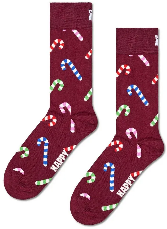 lieferbar-in 4-5 Werktagen bei dirHappy Socks Socken Tagessocke Crew Candy Cane (Zuckerstange) weinrot - 1 Paar rot 36-40