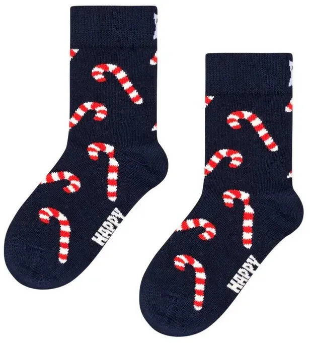 lieferbar-in 4-5 Werktagen bei dirHappy Socks Socken Tagessocke Kids Candy Cane (Zuckerstange) navyblau Kinder - 1 Paar blau 7-9Y