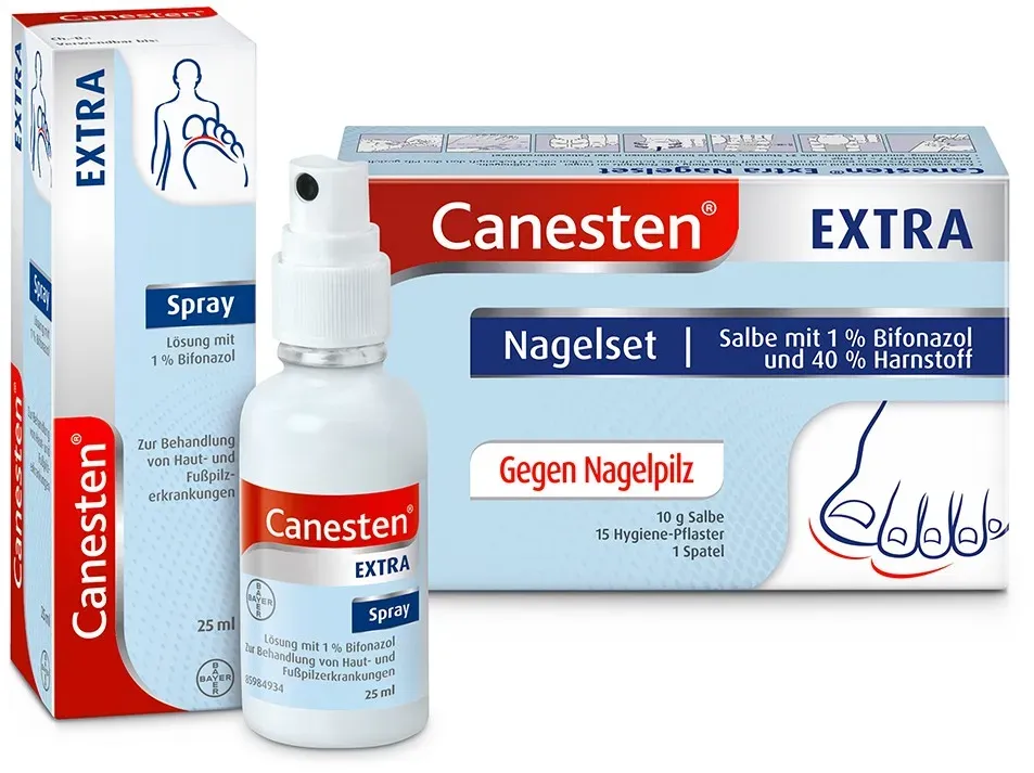 Kategorie: Fußpflege - Bayer - GTIN:4150006190536 - PZN:00619053 - Wichtige Hinweise (Pflichtangaben): Canesten Extra Nagelset . Anwendungsgebiete: Zur nagelablösenden Behandlung von Pilzerkrankungen der Nägel an Händen und Füßen mit gleichzeitiger gegen Pilze ... - 25,79 Euro bei Mycare - gefunden von billiger.de Dieses Nagelset ist eine gute Wahl für die Behandlung von Nagelpilz und bietet ein umfassendes Paket. ![]() Medikament e- per- klick.de