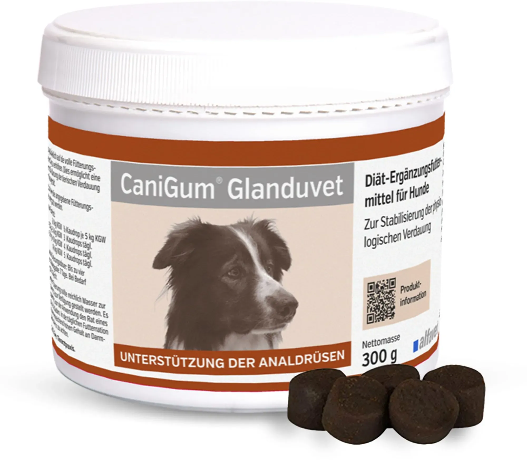 Auf Lager Versand durch Amazonalfavet CaniGum Glanduvet, Kaudrops für Hunde bei Analdrüsenverstopfung, unterstützt Kotqualität und Darmwohl, Diät-Ergänzungsfuttermittel,Analdrüsenkur für Hunde 300 g