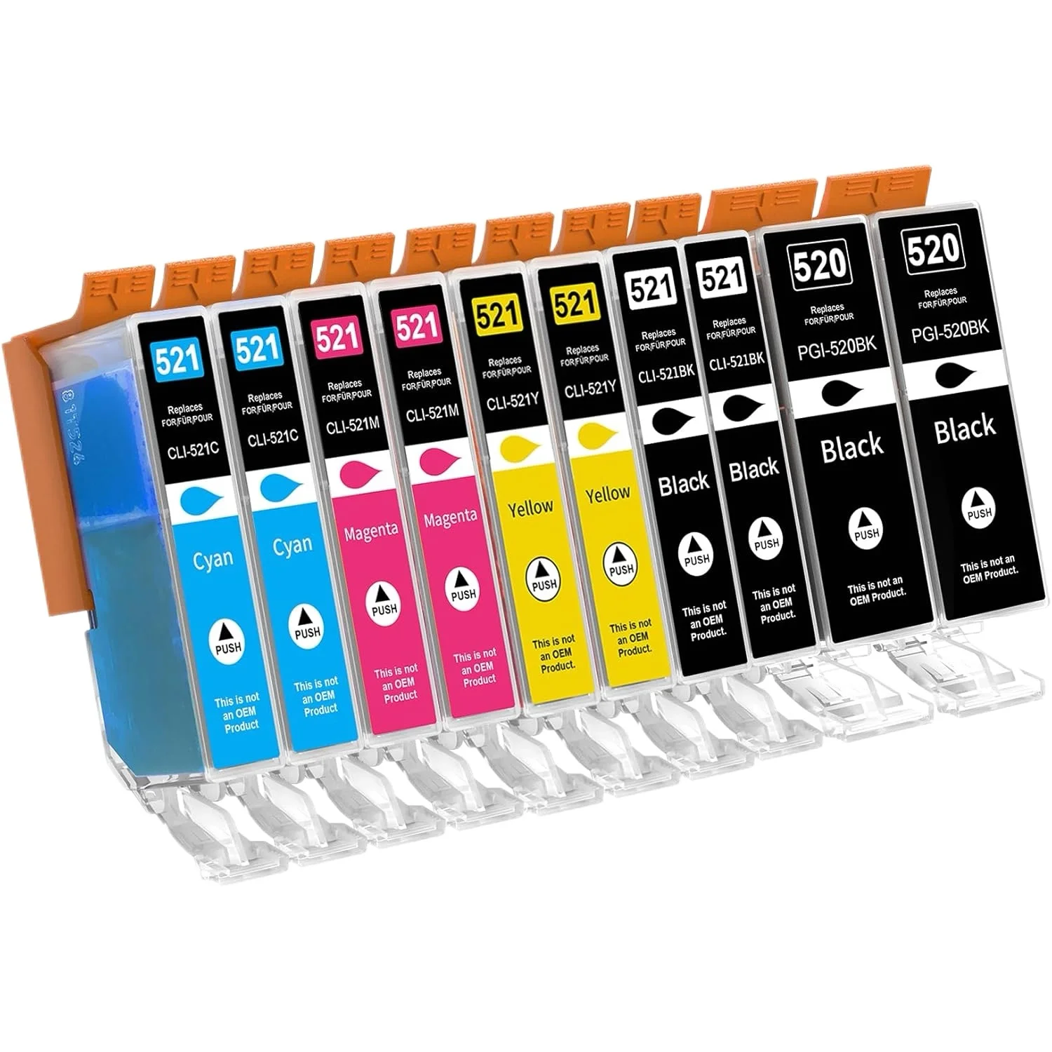Auf Lager Versand durch Amazon10x 520XL 521XL Druckerpatronen Kompatibel für Canon PGI-520 CLI-521 für Canon PIXMA iP3600 iP4600 iP4700 MP540 MP550 MP560 MP620 MP630 MP640 MP980 MP990 MX860 MX870
