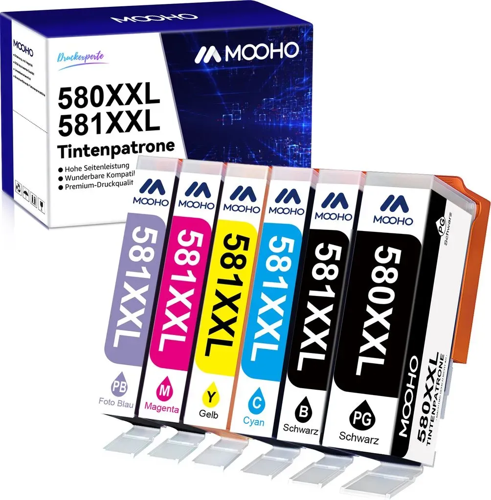 Kategorie: Druckerpatronen - CMYBabee - GTIN:9061022661724 - Canon 580 581 multipack Kompatibler Ersatz für Tintenpatronen mit brother Reichweite für Canon 580xxl 581xxl patrone (NICHT Original)Ersetzt Bezeichnung:CLI-581XXL Foto BlauPGI-580 XXL PGBKCLI-581 XXL BKCLI-581 XXL CCLI-581 XXL MCLI-581 XXL YFarbe:FotoblauSchwarz pigmentiertSchwarzCyanMagentaGelbSeitenreichweite:9140 Seiten4590 Seiten600 Seiten830 Seiten830 Seiten830 SeitenFüllmenge:13 ml25 ml13 ml13 ml13 ml13 mlMenge:1x1x1x1x1x1xKompatible Druckermodelle: PGI-580 / CLI-581 (nicht Fotoblau) sind für folgende Drucker geeignet:Für Canon Pixma TR7550 TR8550 TS6150 TS6151 TS6250 TS8150 TS8151 TS8152 TS8250 TS8251 TS8252 TS9150 TS9155 TS9550 TS9551 TS705 Drucker. CLI -581 Fotoblau ist für folgende Drucker geeignet:Für Canon Pixma TS8150 TS8151 TS8152 TS8250 TS8251 TS8252 TS9150 TS9155 Drucker.Vorteile:Die kompatiblen Patronen von MOOHO bieten Ihnen ein besseres Druckerlebnis und stellen sicher, dass jede Tintenpatrone perfekt mit Ihrem Drucker kompatibel ist.Warme Tipps:1. Bitte vermeiden Sie, den Chip zu berühren.2. Wenn die Fehlermeldung 'Patrone kann nicht erkannt werden' oder 'Patrone ist beschädigt' lautet, installieren Sie die Patrone mehrmals neu um zu überprüfen, ob sie richtig eingesetzt ist.ProduktvorteileHohe Leistung:Verwenden Sie MOOHO-kompatible Tinten zum Drucken von Fotos, hochwertige Druckleistung, um sicherzustellen, dass die Farbe lange hält und jede wertvolle Erinnerung für immer intakt ... Kaufland.d e