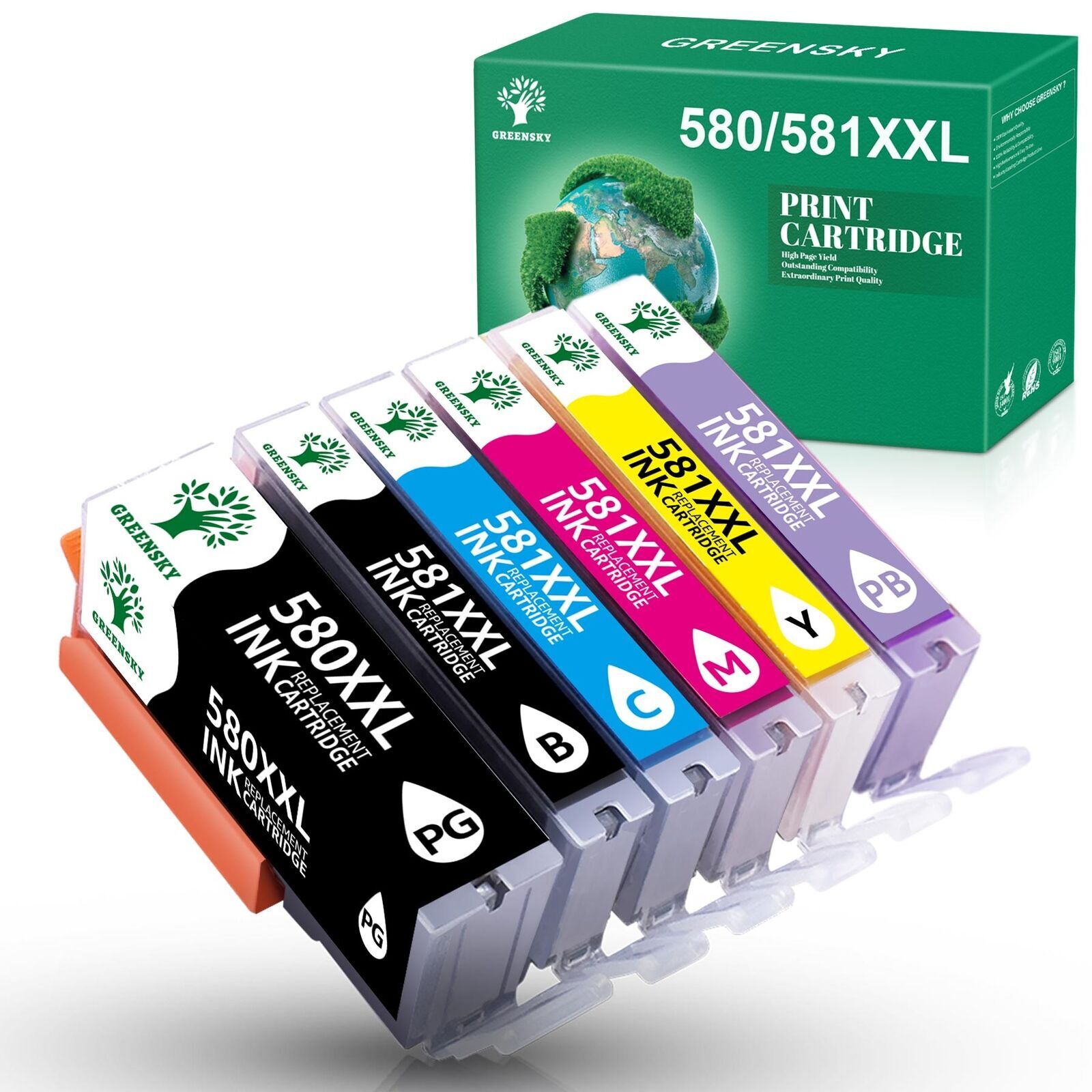 Kategorie: Druckerpatronen - GREENSKY - GTIN:9061022660635 - 100% passgenau und kompatibel mit Canon PGI-580XXL & CLI-581XXLPaket:6er Pack PGI-580XXL CLI-581XXL-kompatible Tintenpatrone (1PGI-580XXL PGBK, 1CLI-581XXL Schwarz, 1CLI-581XXL Cyan, 1CLI-581XXL Magenta, 1CLI-581XXL Gelb, 1CLI-581XXL Foto Blau)Seitenertrag:600 Seiten für PGBK, 4590 Seiten für Schwarz, 830 Seiten für Cyan, 830 Seiten für Magenta, 830 Seiten für Gelb, 9140 Seiten für Foto Blau(bei 5 Prozent Abdeckung)Produktvorteile:XXL bietet mehr Seitenausbeute, identifiziert Ihren Drucker schnell und bietet eine hervorragende DruckqualitätKompatible Druckermodelle:PGI-580 / CLI-581 (nicht Fotoblau) sind für folgende Drucker geeignet:Für Canon Pixma TR7550 TR8550 TS6150 TS6151 TS6250 TS8150 TS8151 TS8152 TS8250 TS8251 TS8252 TS9150 TS9155 TS9550 TS9551 TS705 Drucker. CLI -581 Fotoblau ist für folgende Drucker geeignet: Für Canon Pixma TS8150 TS8151 TS8152 TS8250 TS8251 TS8252 TS9150 TS9155 Drucker.Vorteilhohe Qualität. Wir wählen hochwertige Verbundfarbstoffe der Klasse A +, die einen breiten Farbumfang und primäre BK / C / M / Y-Farben erzeugen. Wir halten uns strikt an den Standard der Originaltinte, um Farbtöne, Farbton und Sättigung zu bestimmen. Schwarz-Grau-Druckeffekt: Klare Schrift, natürliche Abstufung von Dunkelschwarz bis Hellgrau, keine gebrochene Bodenasche und Flecken beim Drucken einer großen Fläche von Schwarz oder Grau. Farbdruckeffekt: natürliche Farbe, starke Farbreduzierbarkeit, natürliche ... Kaufland.d e