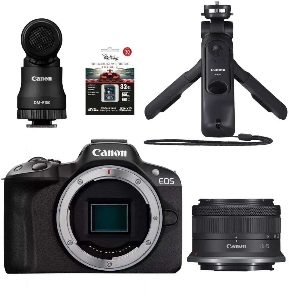 keine Angabe (Amazon Prime) keine Angabe Versand durch AmazonCanon EOS R50 Creator Kit Vlogging Kamera + RF-S 18-45 is STM Objektiv + Griffstativ + Mikrofon & 9967B002 Akku LP-E17, schwarz