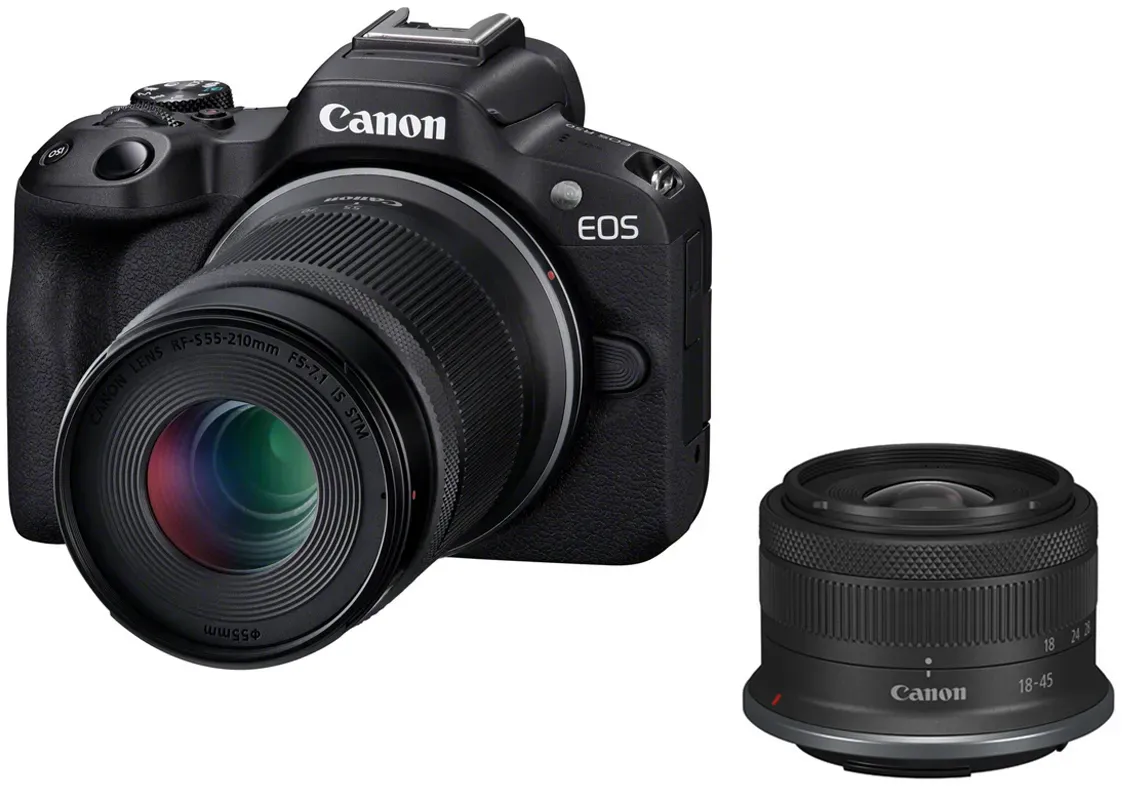 Verfügbarkeit: sofort abholbereit oder lieferbar in 1-3 Tagen - Kategorie: Systemkameras - Canon - GTIN:4549292205046 - Kit mit RF-S 4,5-6,3/18-45 mm, 24,2 MP CMOS Sensor, dreh- und schwenkbares 7,5 cm (3,0 Zoll) LC-Display, EVF mit 2,36 Mio. Bildpunkten& komfortabler Griff, Dual Pixel CMOS AF II, 4K UHD 30p Video, WLAN, Bluetooth, USB, 3,5 mm Mikrofoneingang. - 689,00 Euro bei allMedia - gefunden von billiger.de Ein umfassendes Doppelzoom-Kit, das eine breite Palette an Brennweiten abdeckt und somit sehr vielseitig ist. ![]() ![]() Canon EOS R50 Systemkamera + RF-S 18-45mm is STM Objektiv + RF-S 55-210mm F5-7.1 is STM - Spiegellose Kamera (Digitalkamera mit Autofokus und Motiverkennung für Augen Tiere Fahrzeuge, 4K Video)