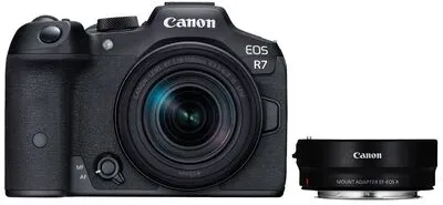 Kategorie: Systemkameras - Canon - GTIN:4549292185553 - Die EOS R7 ist ideal, um diese flüchtigen, einzigartigen Momente einzufangen, die in der Wildlife-, Sport- und Action-Fotografie so begehrt sind. - 1739,00 Euro bei Media Markt Online Shop - gefunden von billiger.de Ein Kit mit dem RF-S 18-150mm Objektiv und einem Objektivadapter, was die Kompatibilität mit älteren EF-Objektiven erweitert. ![]() ![]() Canon EOS R7 + RF-S 18-150mm F3.5-6.3 IS STM + Objektivadapter EF-EOS R (ohne Steuerungsring)