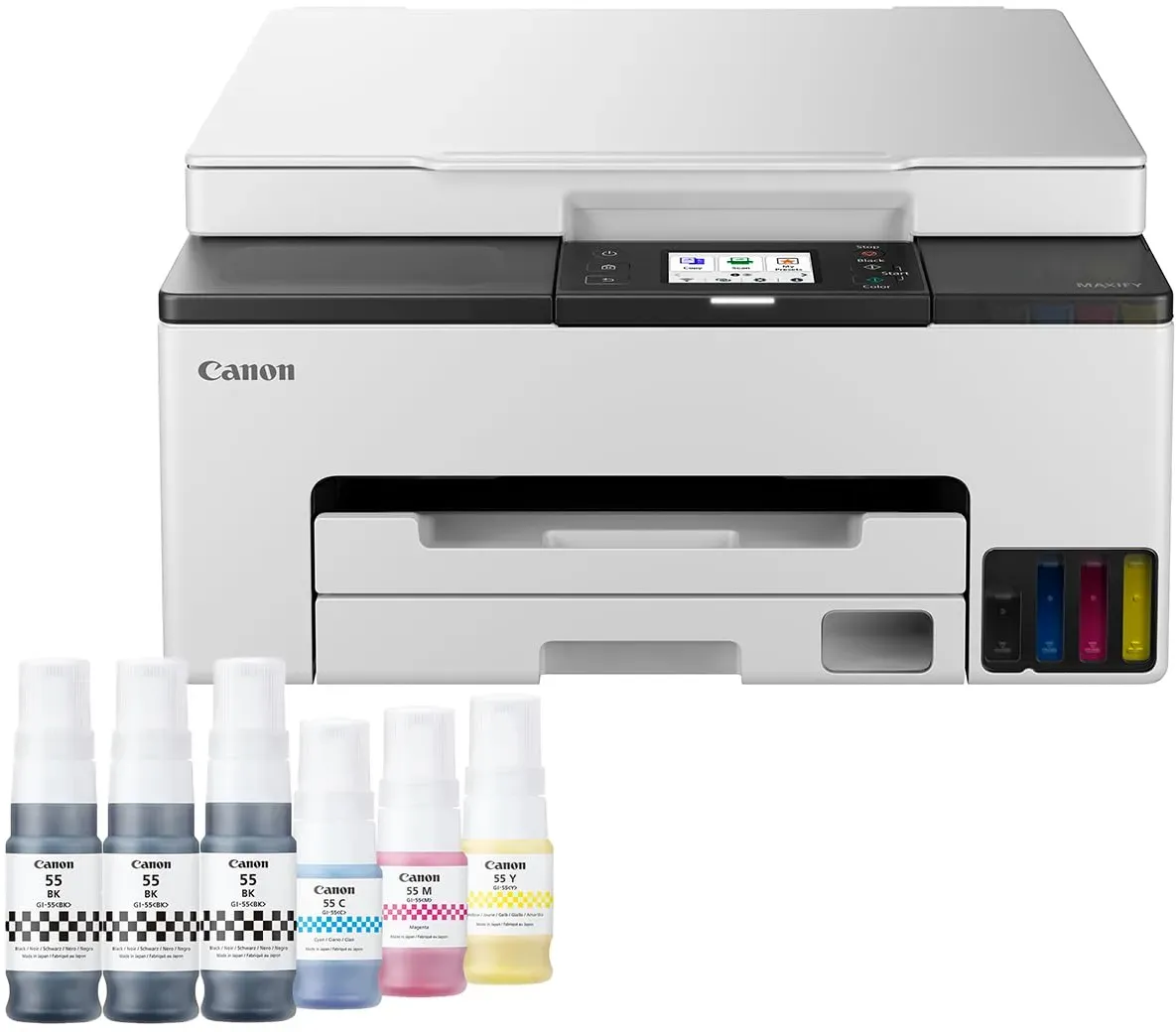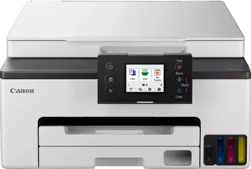 EAN: 4549292219616 - Die Drucker der Canon MAXIFY GX-Serie, gehören zu den beliebtesten MegaTank-Druckern für Unternehmen und Homeoffice.Wir haben den Canon MAXIFY GX4050sowie den MAXIFY GX1050stellvertretend für die Canon MegaTank-Seriefür Sie gestetet: Produktivität auf Büroniveau für zu HauseDieser kompakte, sichere und benutzerfreundliche 3-in-1-Drucker ermöglicht Mitarbeitern mit Homeoffice- und Hybridmodellen ein Arbeiten wie im Büro. Der MAXIFY GX1050 ist der perfekte Business Drucker zum Drucken, Kopieren und Scannen im Homeoffice. Wie bei allen Canon MegaTank Modellen sorgen die nachfüllbaren Tintentanks für geringe Betriebskosten, und über das kippbare 6,7 cm (2,7-Zoll) LCD-Display ist dieser Drucker für kleinere Büros einfach zu bedienen.Ein schneller Business Drucker für das Homeoffice Drucke Geschäftsdokumente mit hohen Geschwindigkeiten von 15 ISO-Seiten/Min. (Schwarzweiß) und 10 ISO-Seiten/Min.Passt überall Stelle diesen Drucker für kleinere Büros an beengten Stellen oder an Wänden auf durch das Design mit Frontbedienung hast du leicht Zugriff. Mit dem kippbaren 6,7 cm-LCD-Touchscreen, der Statusanzeige und der intuitiven Benutzeroberfläche ist er leicht zu bedienen.Drucken, Scannen und Kopieren ohne Pause Automatisches beidseitiges Drucken ohne lästiges Papiernachfüllen dank der 250-Blatt-Papierkassette vorn. Mit der vom Benutzer auswechselbaren Wartungskassette stellst du sicher, dass dein Druck-Workflow nie unterbrochen wird. Drucke bis zu 3.000 Seiten ... Dieses Angebot hebt die umfassenden Konnektivitätsoptionen (USB, Wi-Fi, LAN) hervor, was es für vielseitige Anwendungsbereiche empfehlenswert macht. ![]() ![]() Canon MAXIFY GX1050 - Multifunktionsdrucker - Farbe - Tintenstrahl - nachfüllbar - Legal (216 x 356 mm)/A4 (210 x 297 mm) (Original) - A4/Legal (Medien) - 250 Blatt - USB 2,0, Wi-Fi(ac), LAN (6169C006)