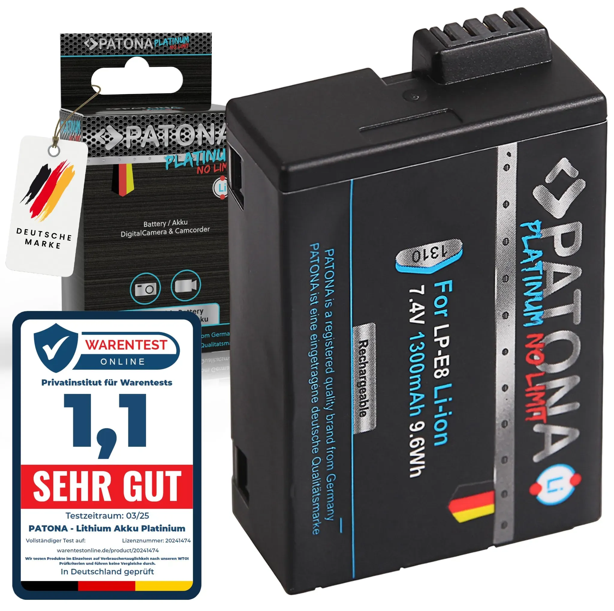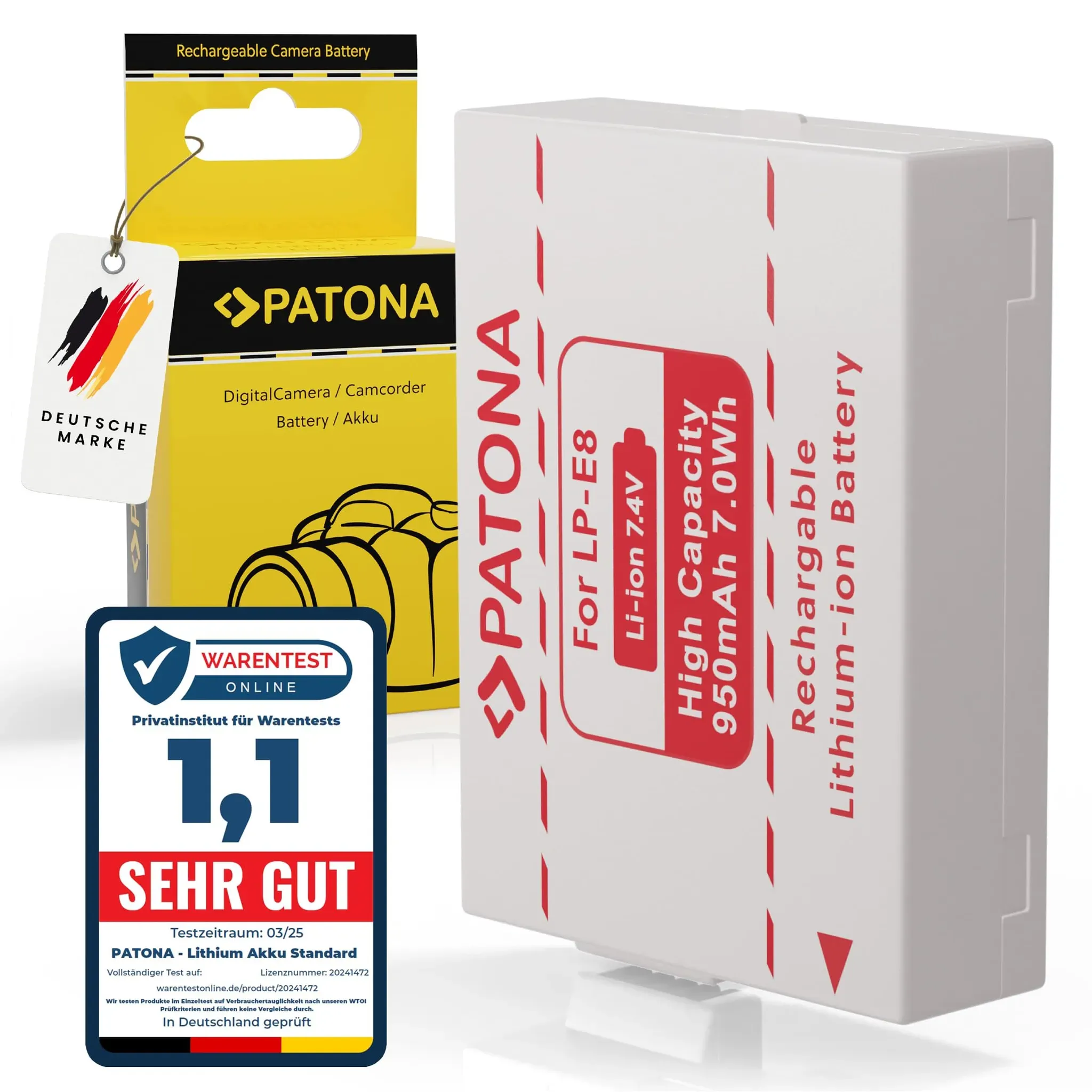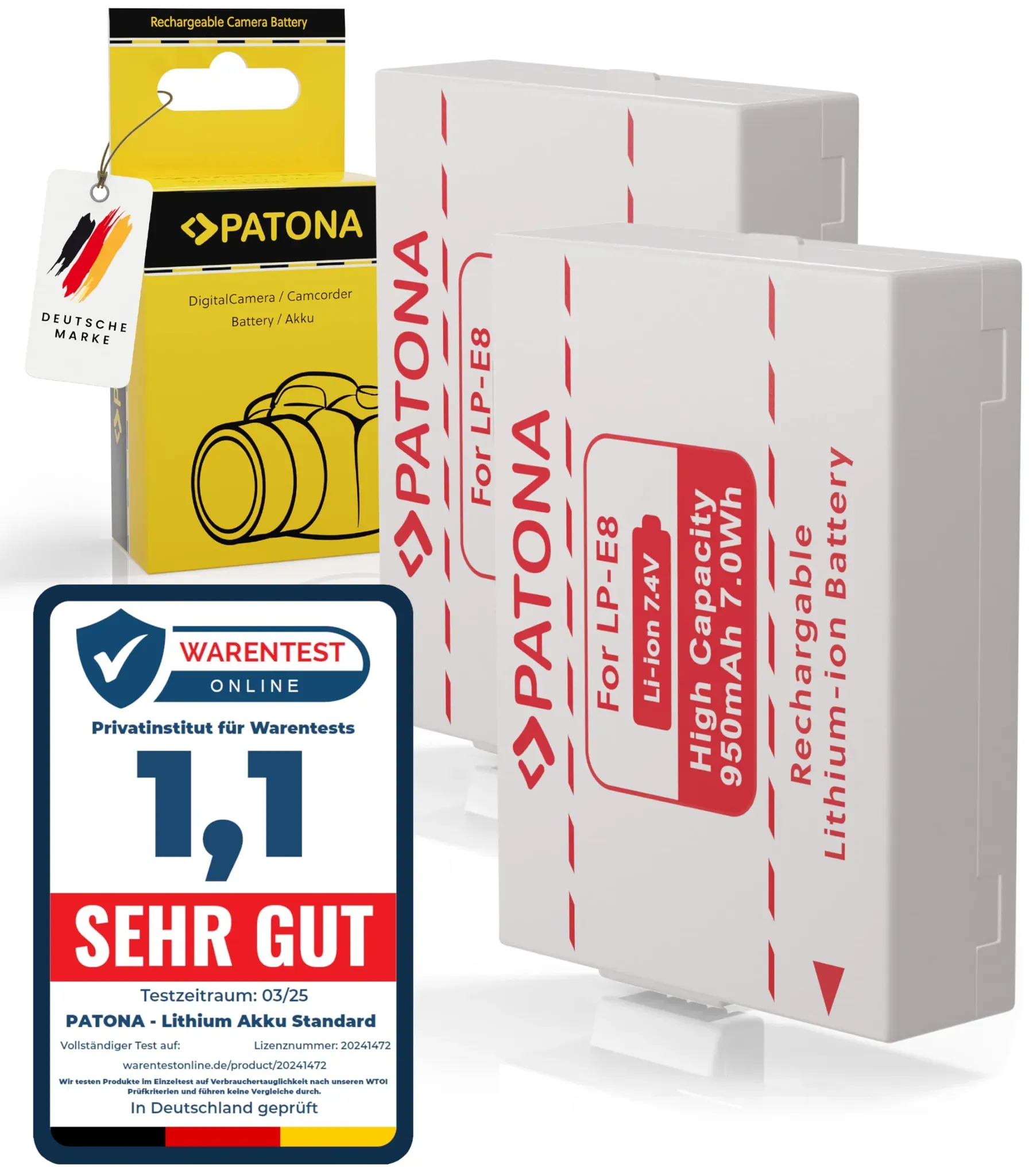 Kategorie: Kamera-Akkus - mtb more energy - GTIN:4250341230413 - Produktdetails Bezeichnung , kompatibel mit Akku-Typ Canon LP-E8, Anzahl Akkus , 1 St., Technische Daten Kapazität , 1160 mAh, Spannung , 7,4 V, Technologie , Li-Ion, Batterie-/Akku-Technologie , Li-Ion, Stromversorgung Akkukapazität , 1160 mAh, Spannung Akku , 7.4 V, - 15,99 Euro bei OTTO - gefunden von billiger.de Dieses 2er-Pack PATONA Akkus bietet ein hervorragendes Preis-Leistungs-Verhältnis für Nutzer, die mehrere zuverlässige Ersatzakkus benötigen. ![]() ![]() PATONA 2X LP-E8 Akku 950mAh Ersatzakku kompatibel mit Canon EOS 550D 600D 650D 700D Rebel T2i T3i T4i T5i Kiss X4 X5 X6i X7i Battery Pack LPE8 LP E8 LPE 8
