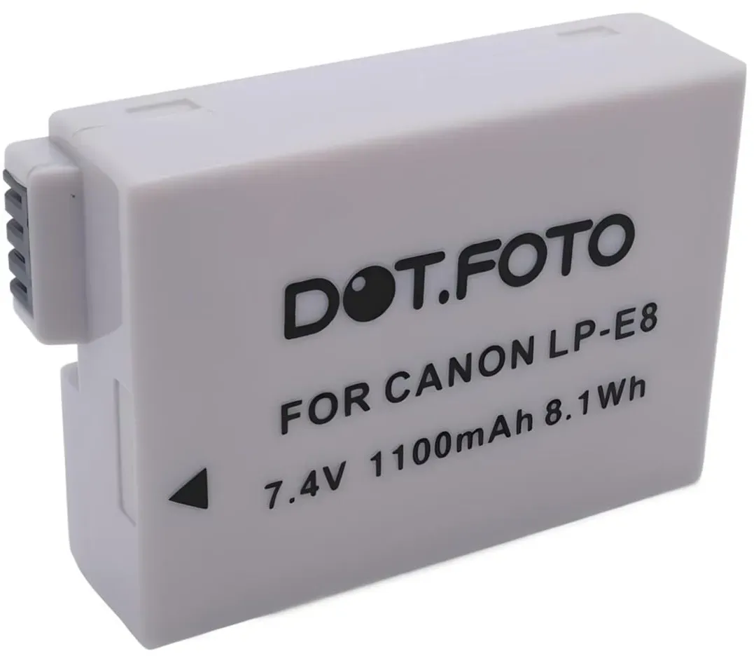 Kategorie: Kamera-Akkus - uwayor - Voltage: 7.4V | Capacity: 1900mAh Battery Type: Lithium-Ionen-Akku. So gut wie Canon Original-Akkus. Hochwertige Zellen erzeugen Qualitätsakkus. Die hohe Kapazität von 1900mAh ermöglicht es Ihnen, Videos länger aufzunehmen und mehr Fotos zu schießen Ersatzbatterien von Canon LP-E8 für Canon Rebel T3i, T2i, T4i, T5i, EOS 600D, 550D, 650D, 700D, Kiss X5, X4, Kiss X6, kompatibel mit Original Intelligentes LED-Ladegerät: Die Kombination aus zwei Akkus und einem Ladegerät verdoppelt die Nutzungsdauer der Kamera. Mit dem Ladegerät mit zwei Batterien können Sie schnell zwei Batterien gleichzeitig aufladen über das LED-Display können Sie den Ladezustand des Akkus leicht erkennen Package includes: 2X LP-E8 Batteries + LED Dual USB Charger + Micro Cable + Manual 30days Money Back; Any Questions, Please contact us. - 22,99 Euro bei Amazon Marketplace CE - gefunden von billiger.de Der Dot.Foto LP-E8 Premium Akku bietet eine gute Kapazität von 1100mAh und ist eine hochwertige Alternative zum Original. ![]() ![]() Dot.Foto LP-E8 Premium 7.4v / 1100mAh Akku für Canon EOS 550D, 600D, 650D, 700D